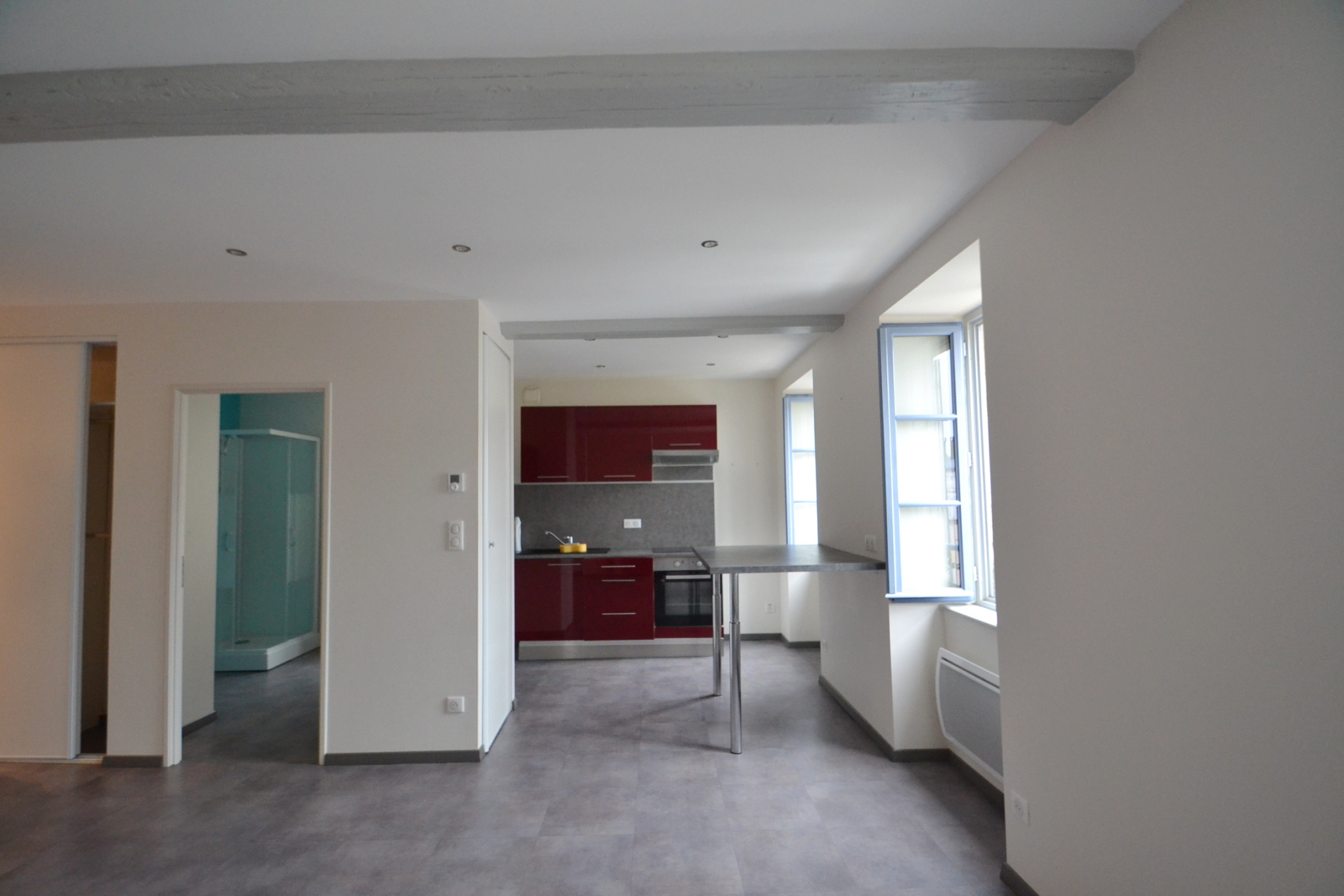 RANDAN, Dans un petit immeuble, un appartement en très bon état, situé au premier étage, comprenant : un dégagement, une cuisine aménagée, ouverte sur séjour, deux chambres avec placards, une salle d'eau WC. Chauffage électrique. Loyer : 500EUR + 30EUR (c...