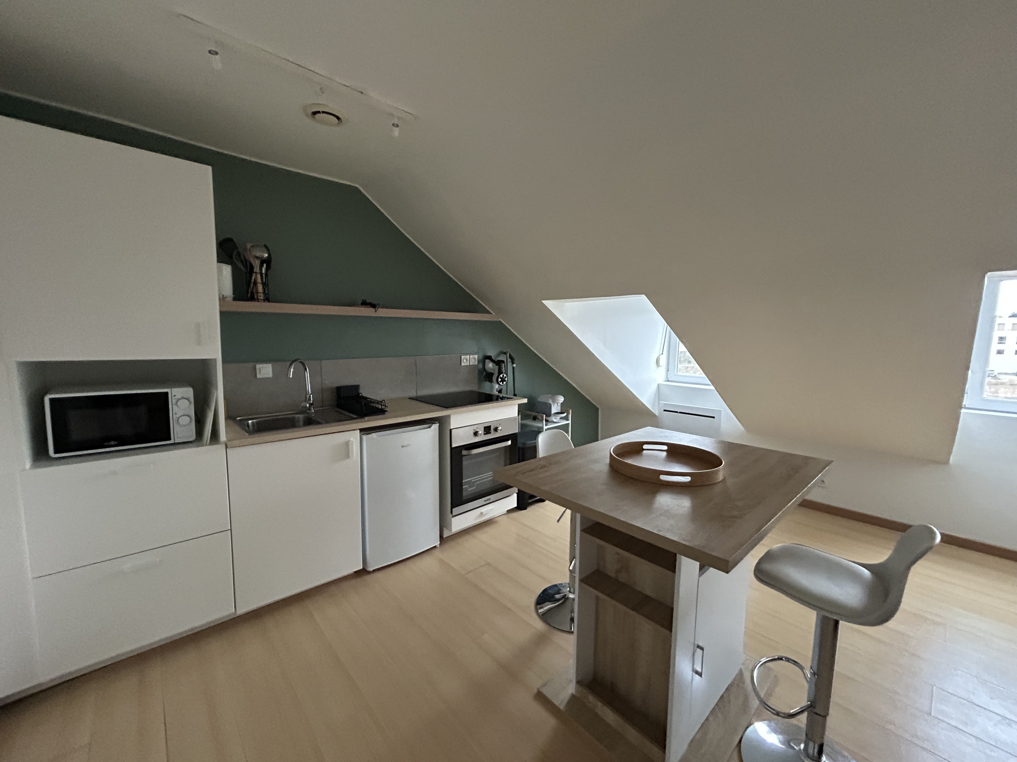 Entièrement équipé, il comprend un espace chambre, un salon lumineux, un coin bureau idéal pour le...