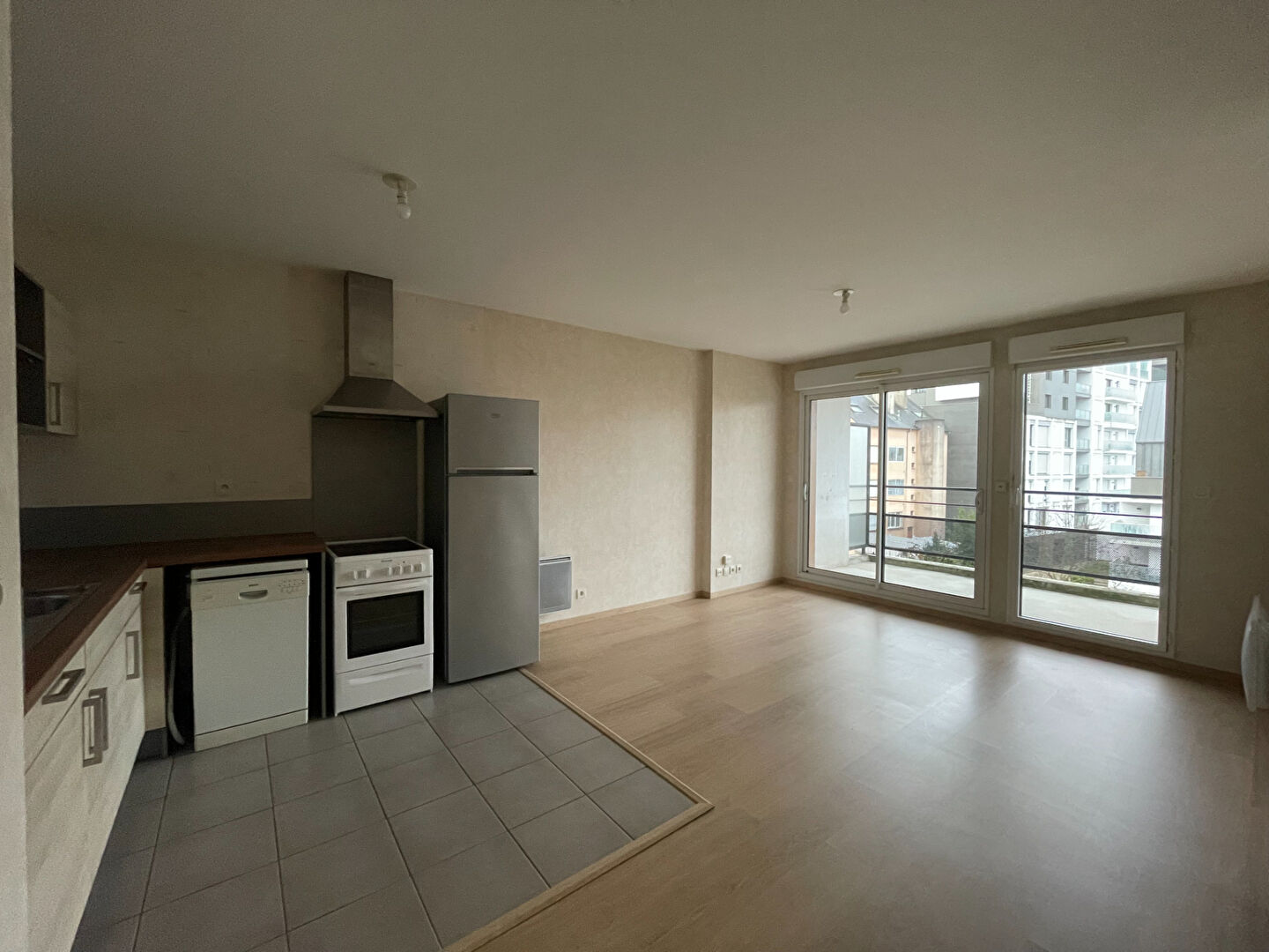 A LOUER RENNES TRIANGLE APPARTEMENT T2 MEUBLE DE 48.05M² SITUE AU DEUXIEME ETAGE comprenant : une entrée avec placard, un séjour avec balcon, une cuisine ouverte aménagée et équipée, une chambre, une salle d'eau et un WC.