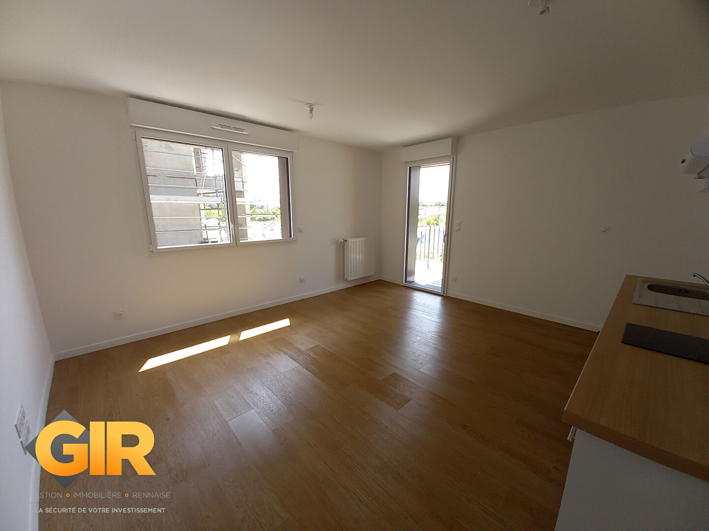 A LOUER RENNES QUARTIER LA PLAINE DE BAUD UN APPARTEMENT T2 NEUF DE 42.60m² SITUE AU 1ER ETAGE comprenant : un séjour donnant sur un balcon exposé Sud Ouest avec une cuisine ouverte aménagée et équipée (meuble haut et bas, plaque, hotte, réf...