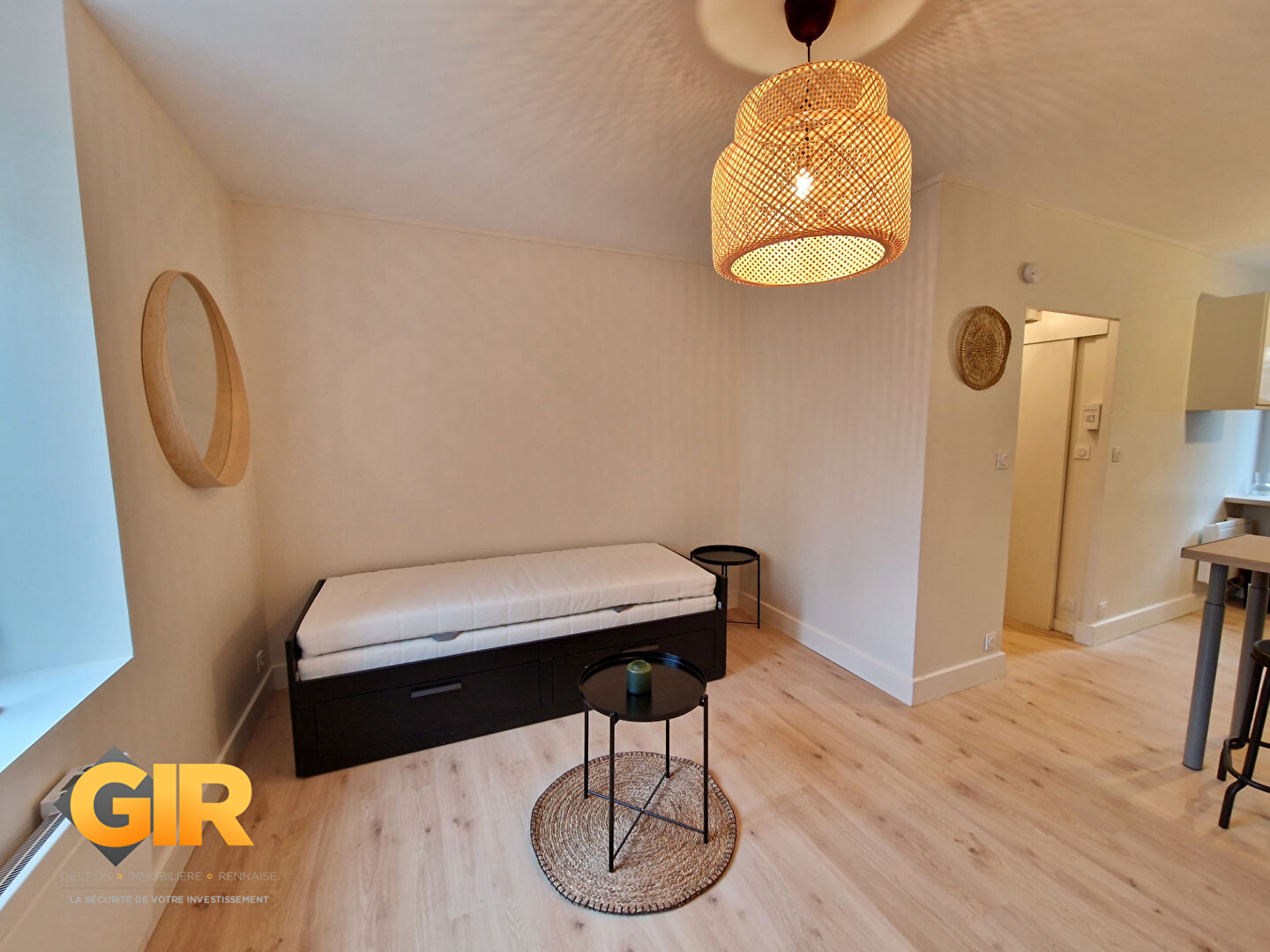 A LOUER RENNES CENTRE VILLE APPARTEMENT T1 BIS MEUBLE DE 24.69M² REFAIT A NEUF SITUE AU 2EME ETAGE comprenant une entrée avec placard, un séjour avec une cuisine ouverte aménagée et équipée( meubles haut et bas, plaque, hotte, four, machi...