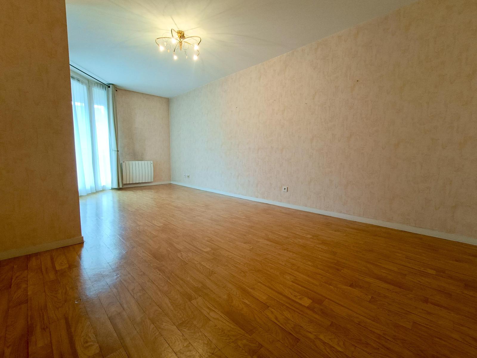 Appartement de type 3 d'environ 70m² situé en rez-de chaussée comprenant une entrée de 5.71m² avec placard, un séjour avec cuisine aménagée et équipée d'une plaque de cuisson, d'une hotte et d'un micro-onde de 33.41m² donna...