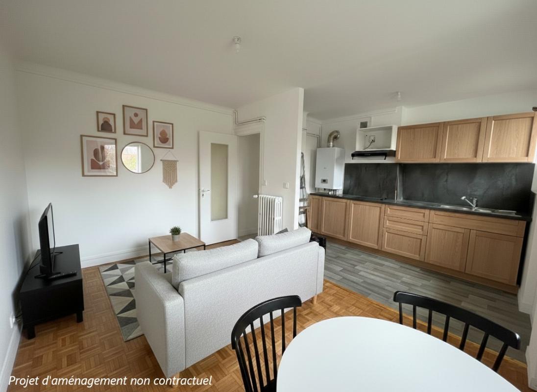 A proximité des écoles, des commerces et des transports, au 4ème étage sans ascenseur, appartement de trois pièces comprenant une entrée, un séjour, une cuisine aménagée avec cellier attenant, un dégagement desservan...