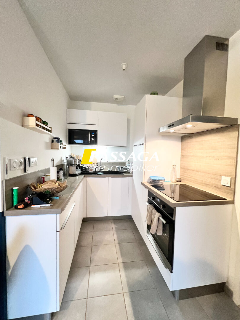 RIGNAC : Dans résidence de standing T1 Bis, à deux pas des commerces, cuisine aménagée (meubles hauts et bas, plaque de cuisson induction, four à pyrolyse, miro ondes, hotte aspirante, frigidaire congélateur), séjour ouvrant sur une terrasse de 11.05 m² expos...