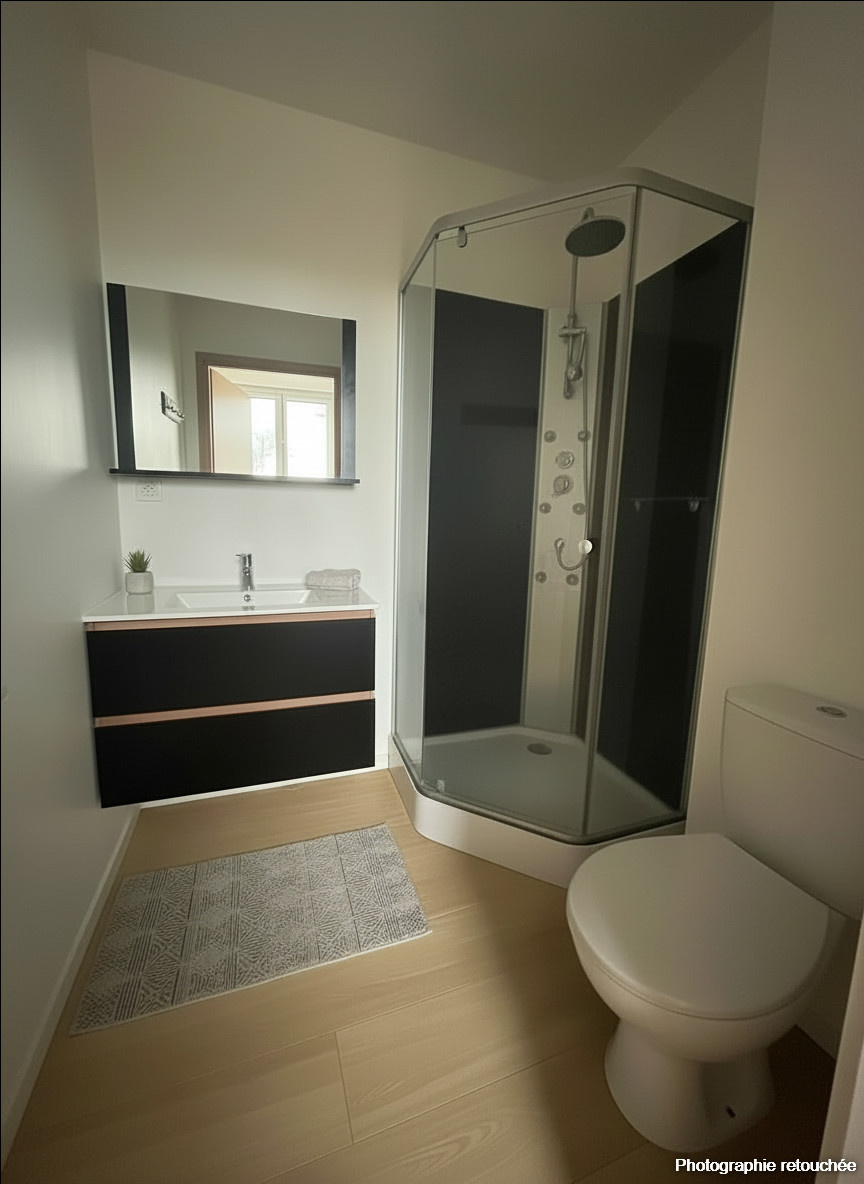 Il se compose d'une belle pièce de vie lumineuse et bien décorée, d'une cuisine équipée (plaque, four, micro-onde, réfrigérateur), ainsi que d'u...