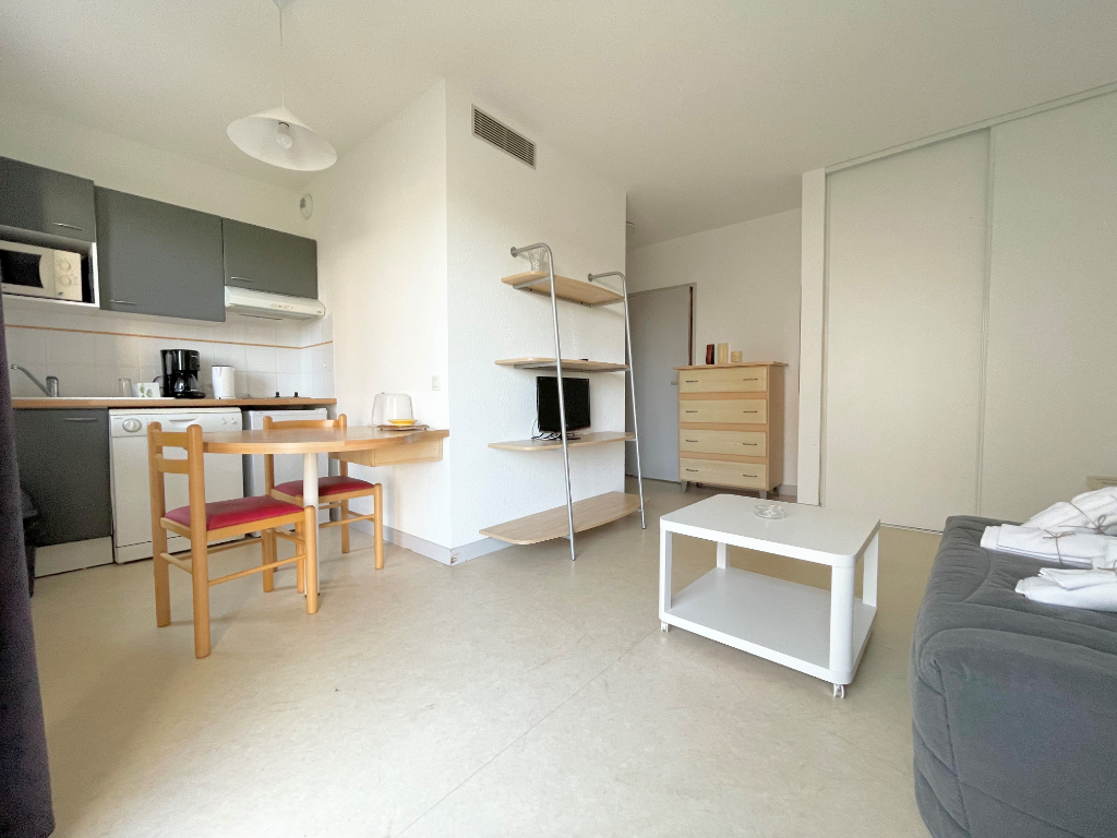Studio meublé sur le port de plaisance. Il comprend une pièce de vie avec cuisine aménagée et équipée, salle d'eau, WC séparé et terrasse privative. Les charges comprennent l'eau, l'entretien des communs, le chauffage et la taxe d'ordures m...