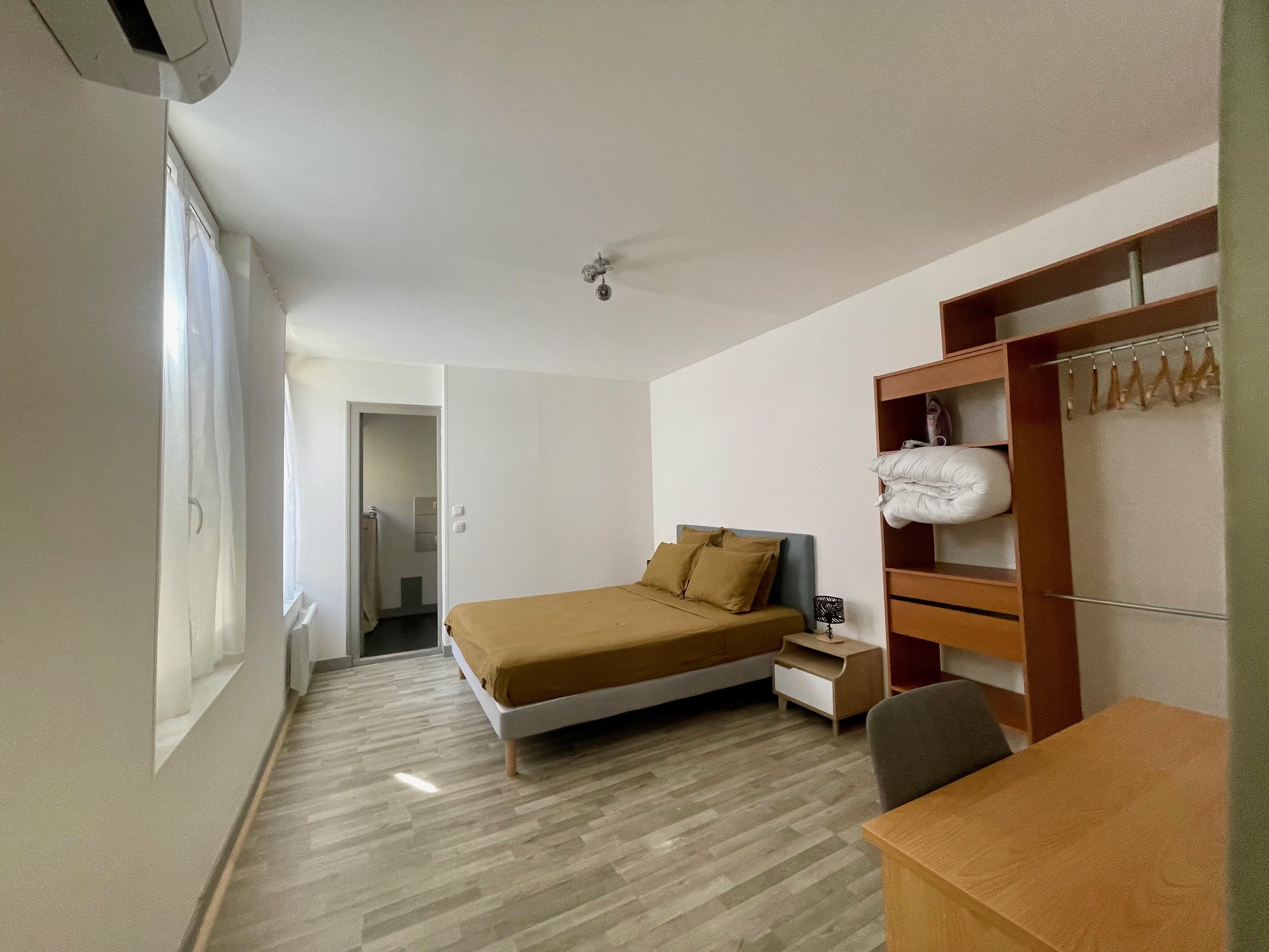 Studio meublé donnant sur une cour commune, comprenant un coin cuisine ouverte sur la pièce principale, une salle d'eau avec wc.