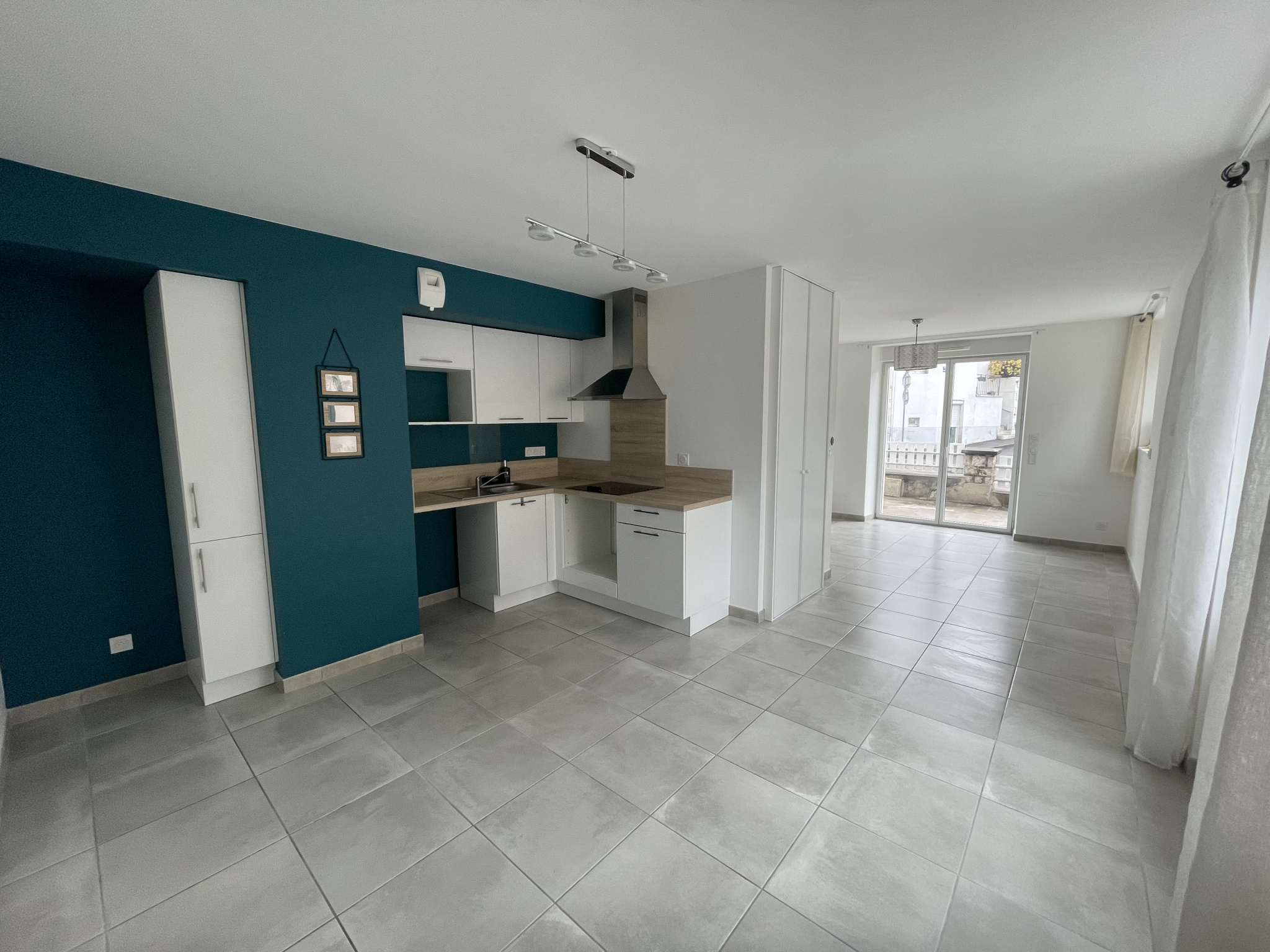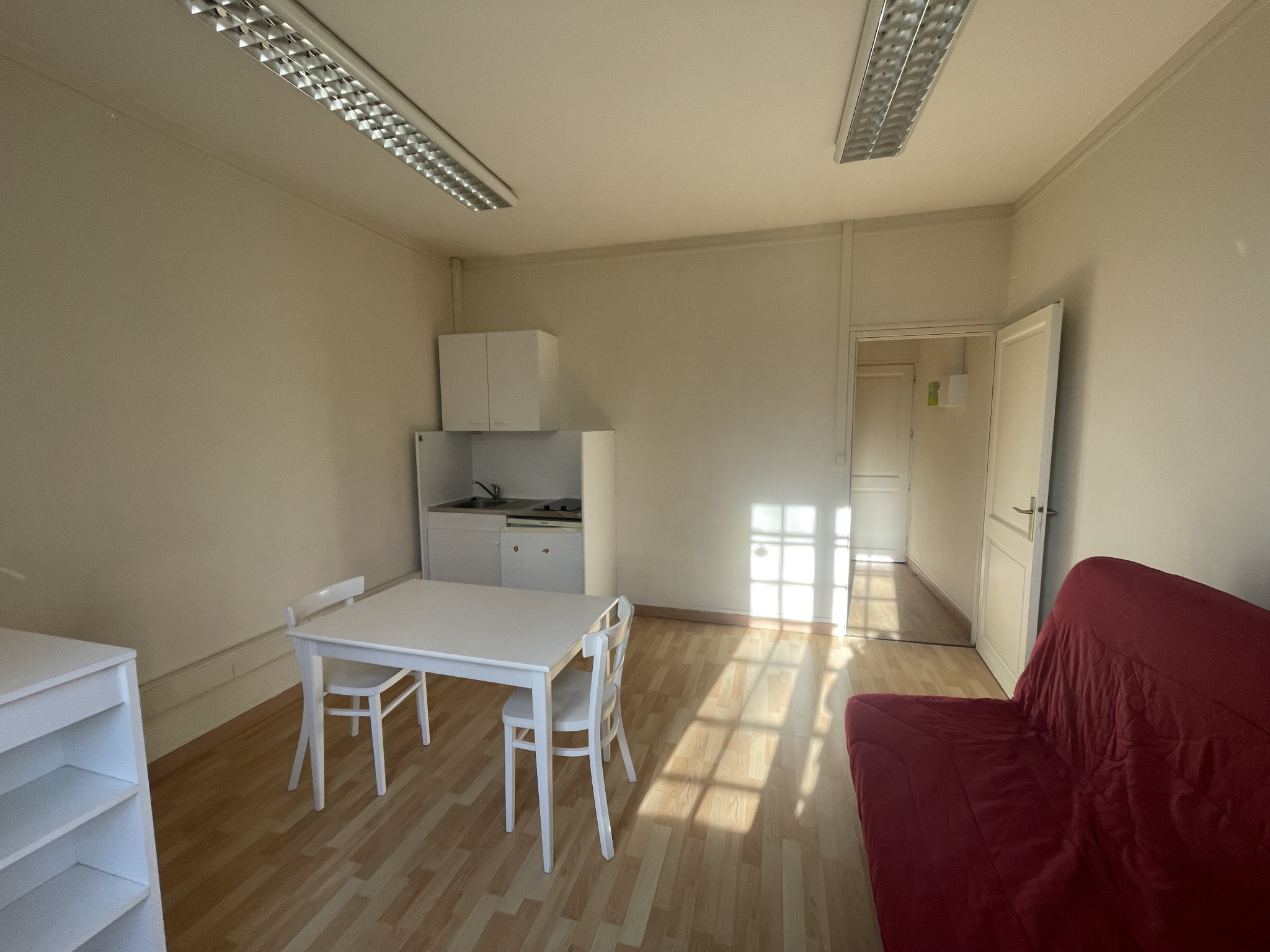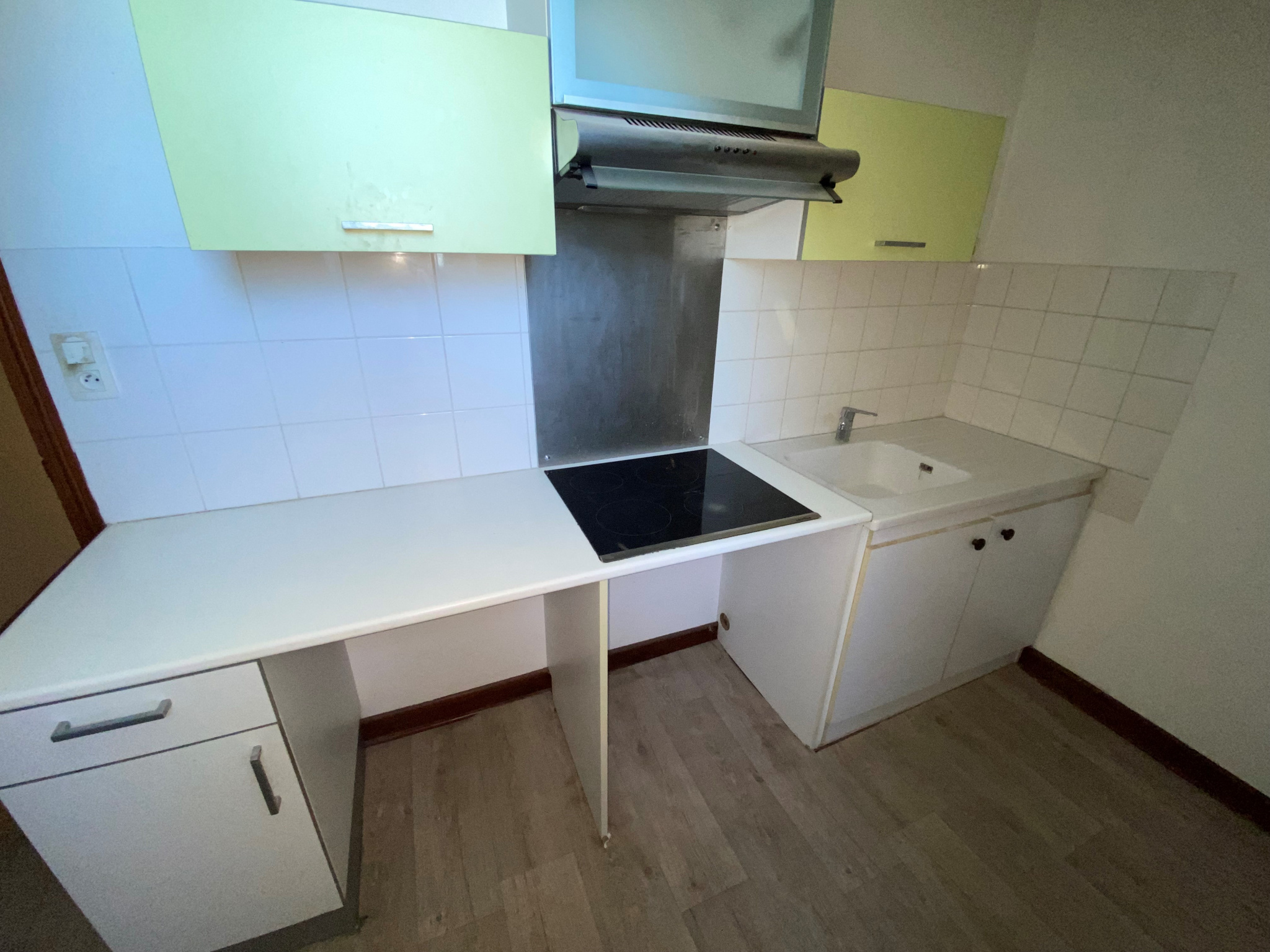 Rue Béteille - Appartement de type II situé au 3ème et dernier étage sans ascenseur, composé d'une entrée, cuisine équipée avec plaque vitrocéramique, hotte et réfrigérateur, d'un séjour/salon, d'une chambre, salle de bain avec wc.
