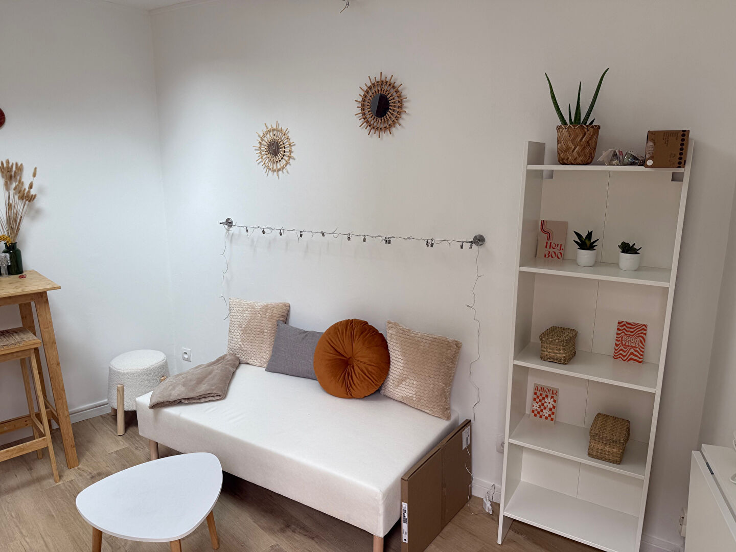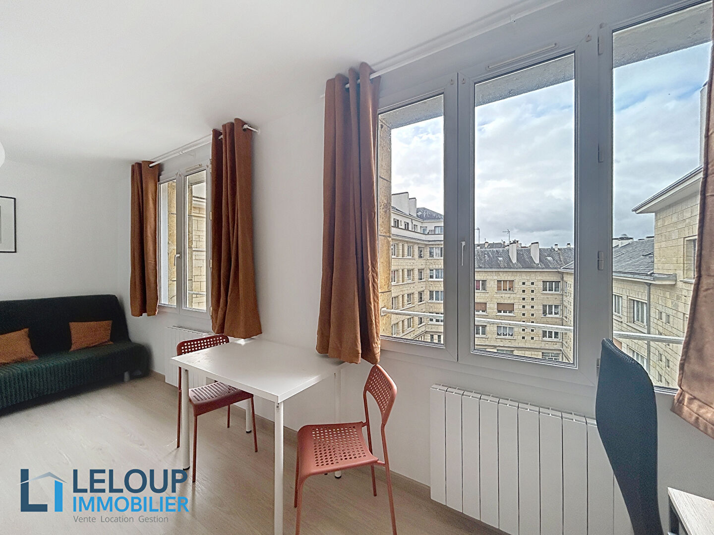 ROUEN RIVE DROITE - QUARTIER VIEUX MARCHE - Un studio meublé avec goût de 32,45 m2 au coeur de Rouen, comprenant une pièce de vie avec lit double, bureau, penderie, canapé, un coin cuisine équipée d'une table avec chaises, le nécessaire pour se restaurer,...