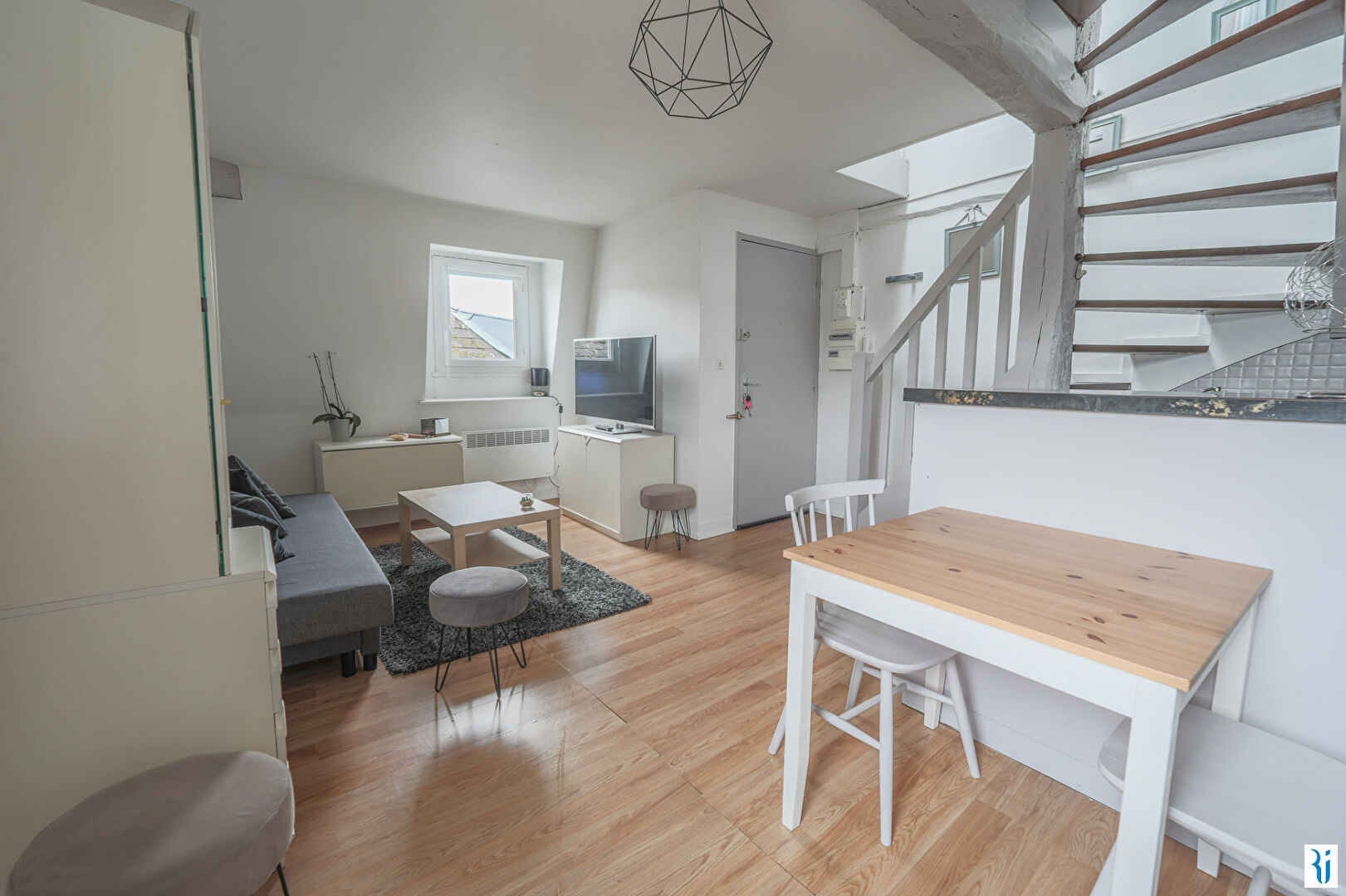 Votre agence vous propose un F1bis en duplex de 21.26m² refait à neuf et joliment meublé dans un immeuble proche de la Place Cauchoise comprenant :