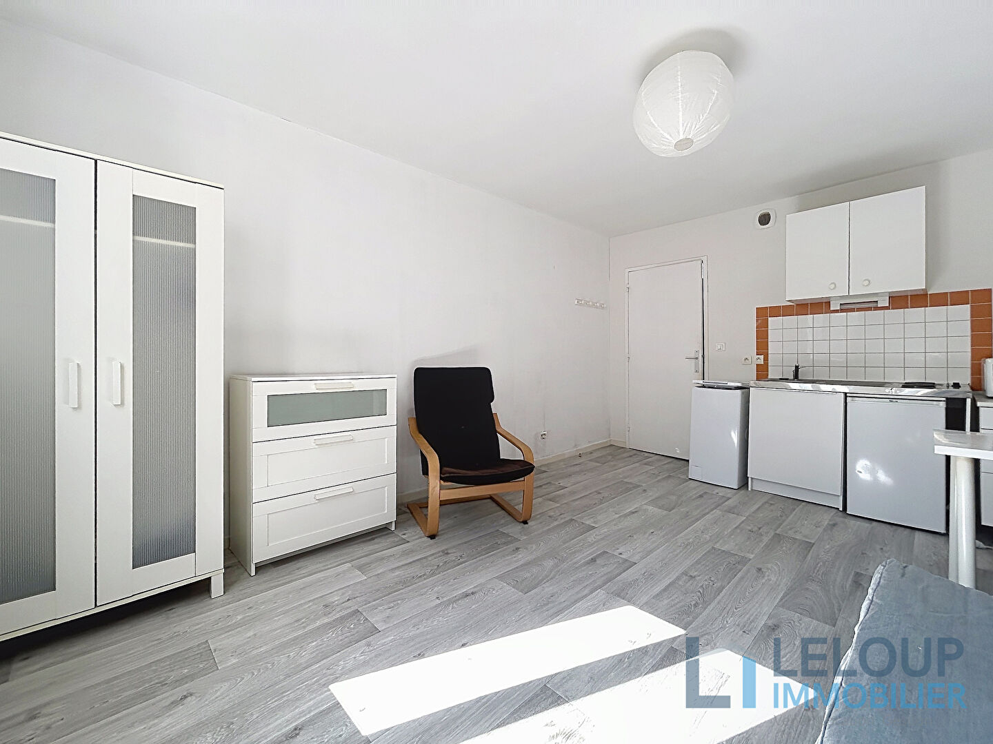 Il comprend une entrée, un séjour avec kitchenette, ainsi qu'une salle de bains avec...