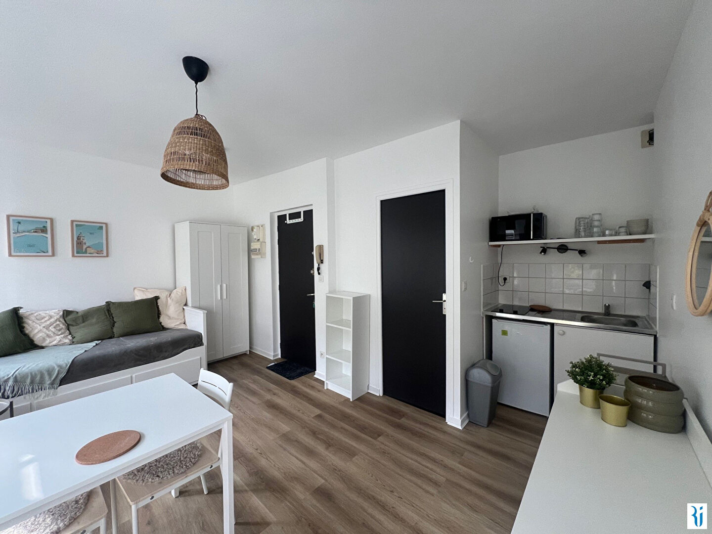 STUDIO F1 MEUBLE de 21,30 m² situé au rez-de-chaussée dans une copropriété calme et sécurisée, comprenant : pièce de vie lumineuse avec rangements et mobilier neuf, coin cuisine fo...