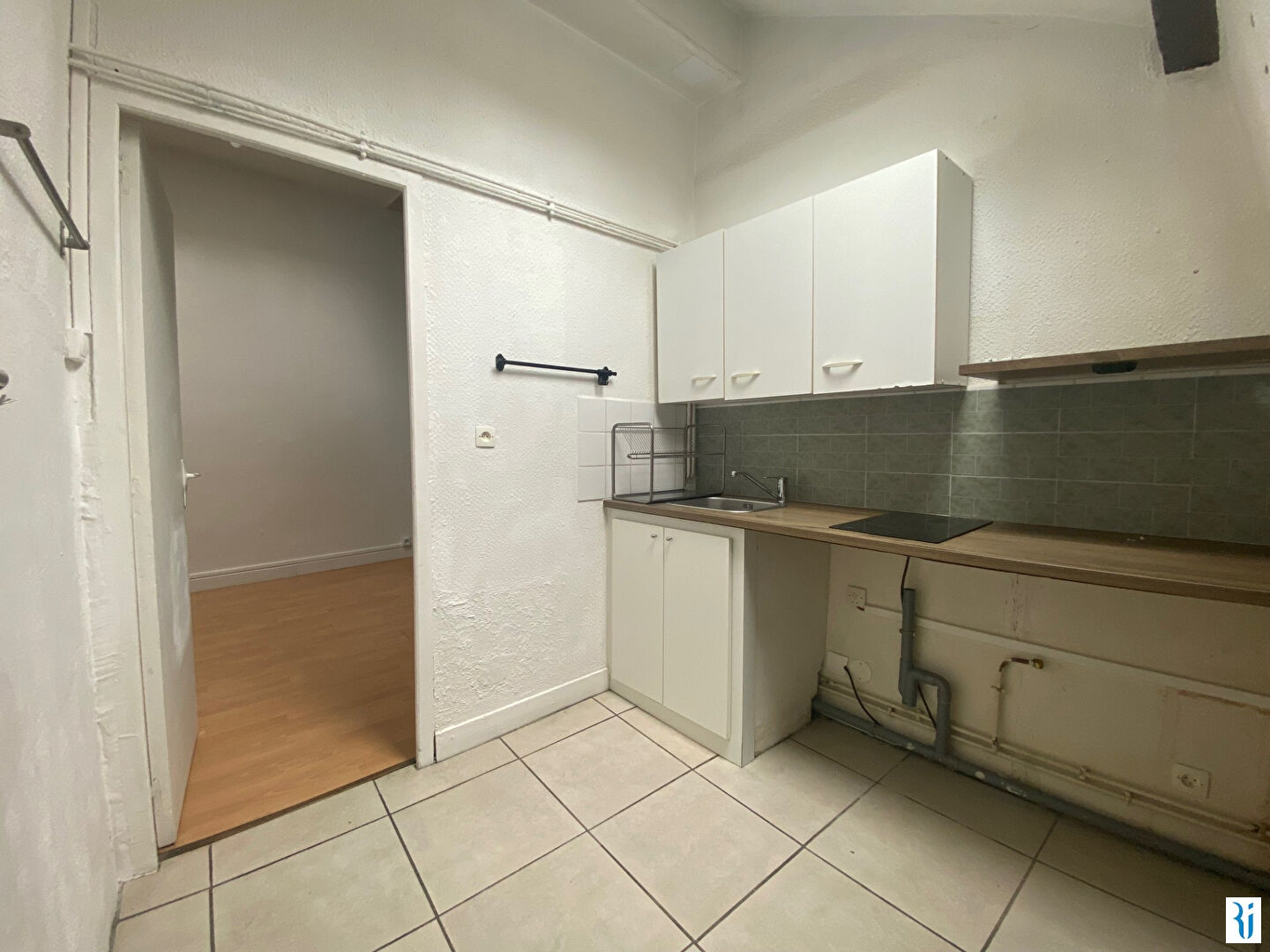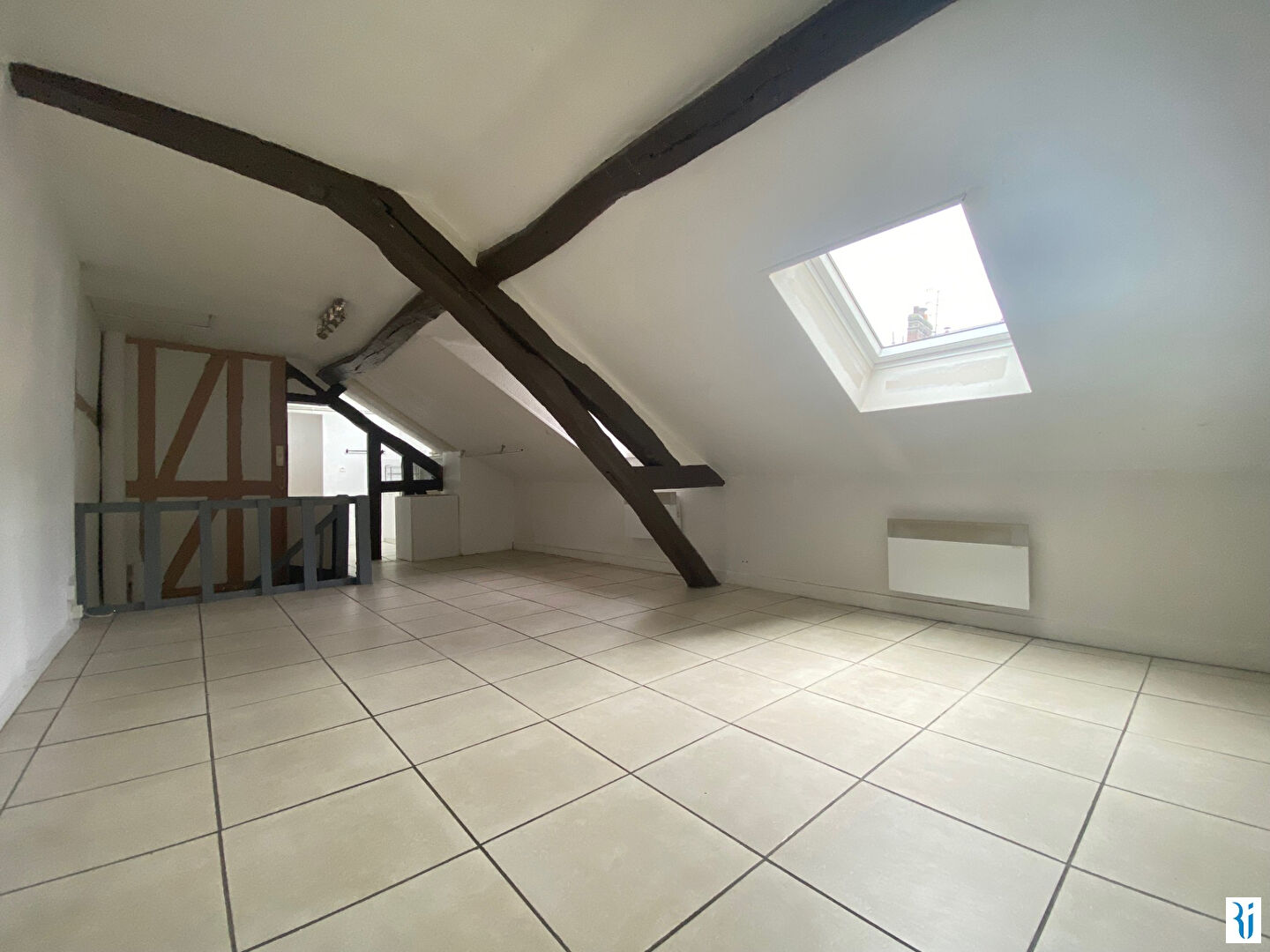 Disponible fin mai, plein coeur historique de ROUEN appartement de type F2 exposé plein sud disposant d'une pièce principale avec coin cuisine équipé de plaques électriques et d'un réfrigérateur, une chambre ave...