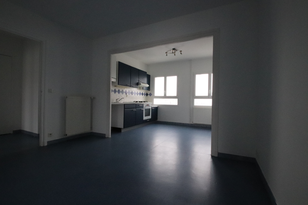 Royan - Hyper-centre - Proche Marché Central et commerces - Un appartement situé au 3ème étage sans ascenseur comprenant : Entrée, séjour, cuisine aménagée, 2 chambres, 1 bureau, salle d'eau, WC séparé, une cave. Chauffage central au gaz.