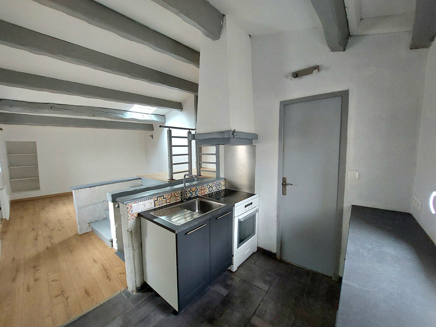 Bel appartement deux pièces en souplex loué meublé situé dans un petit immeuble entièrement rénové au calme d'une impasse et à environ 100 mètres du centre-ville.