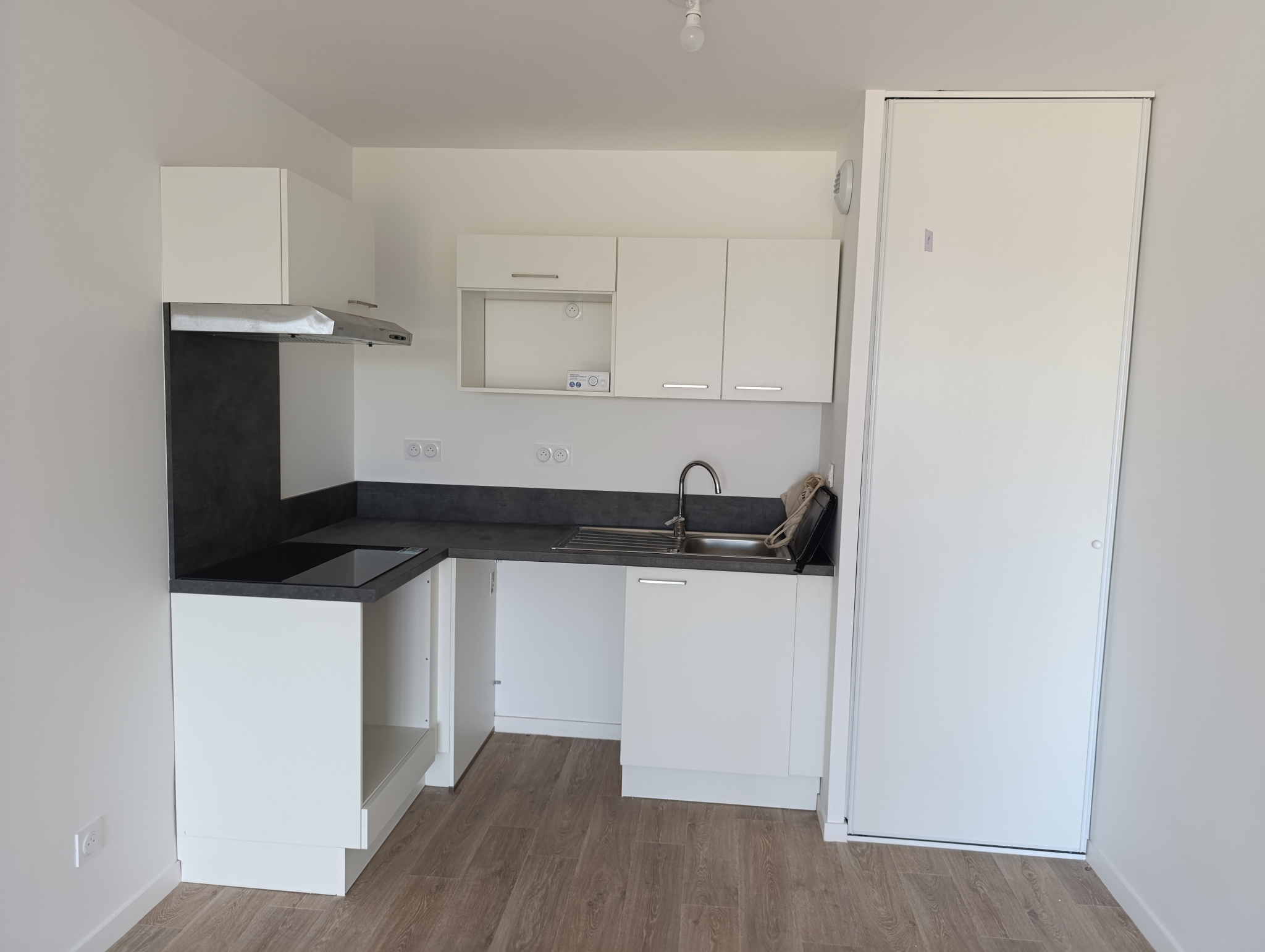 Appartement T1 bis comprenant une entrée avec placard, une cuisine aménagée et équipée, une pièce de vie, une salle de bain ainsi qu'un dressing.