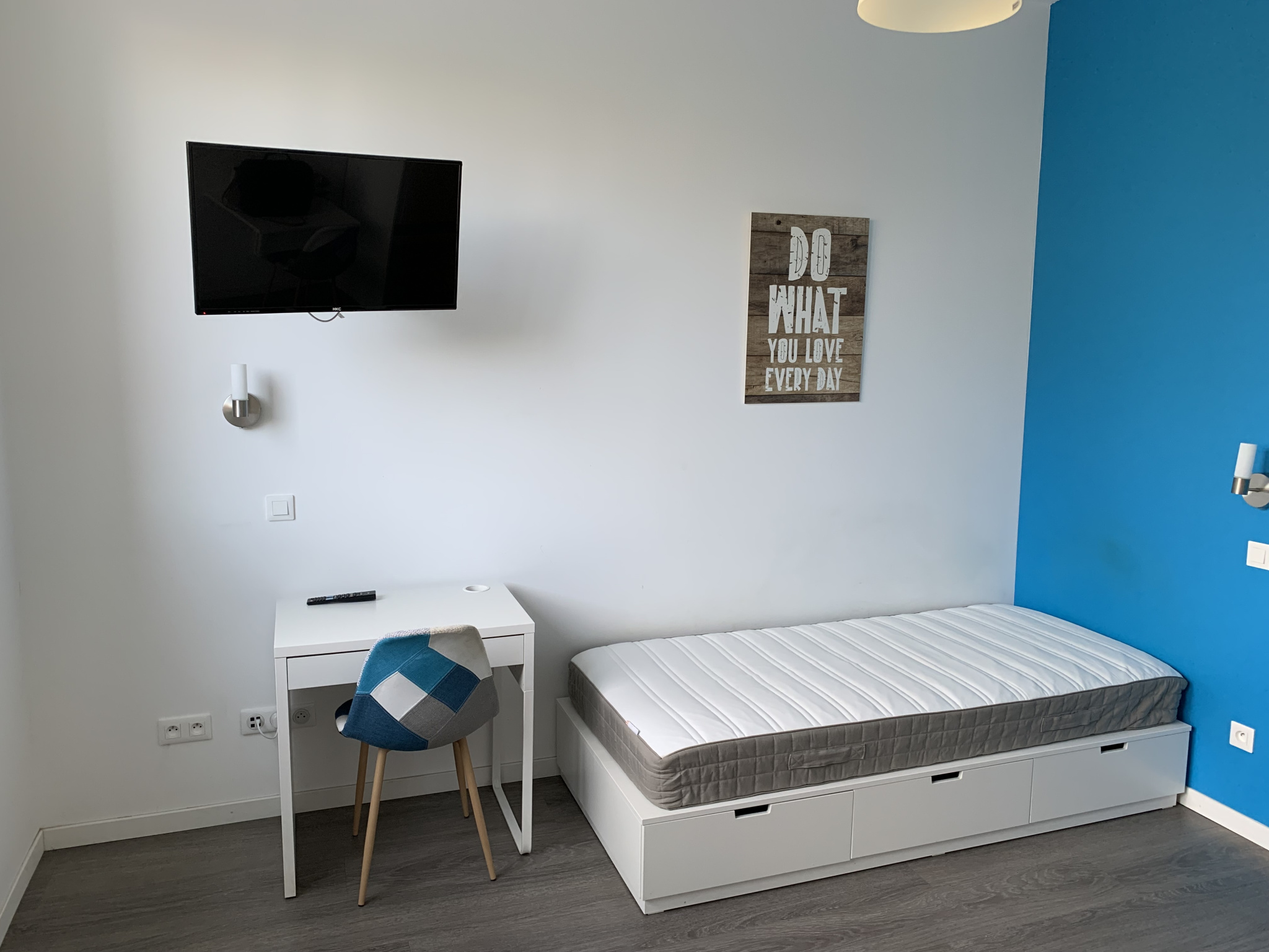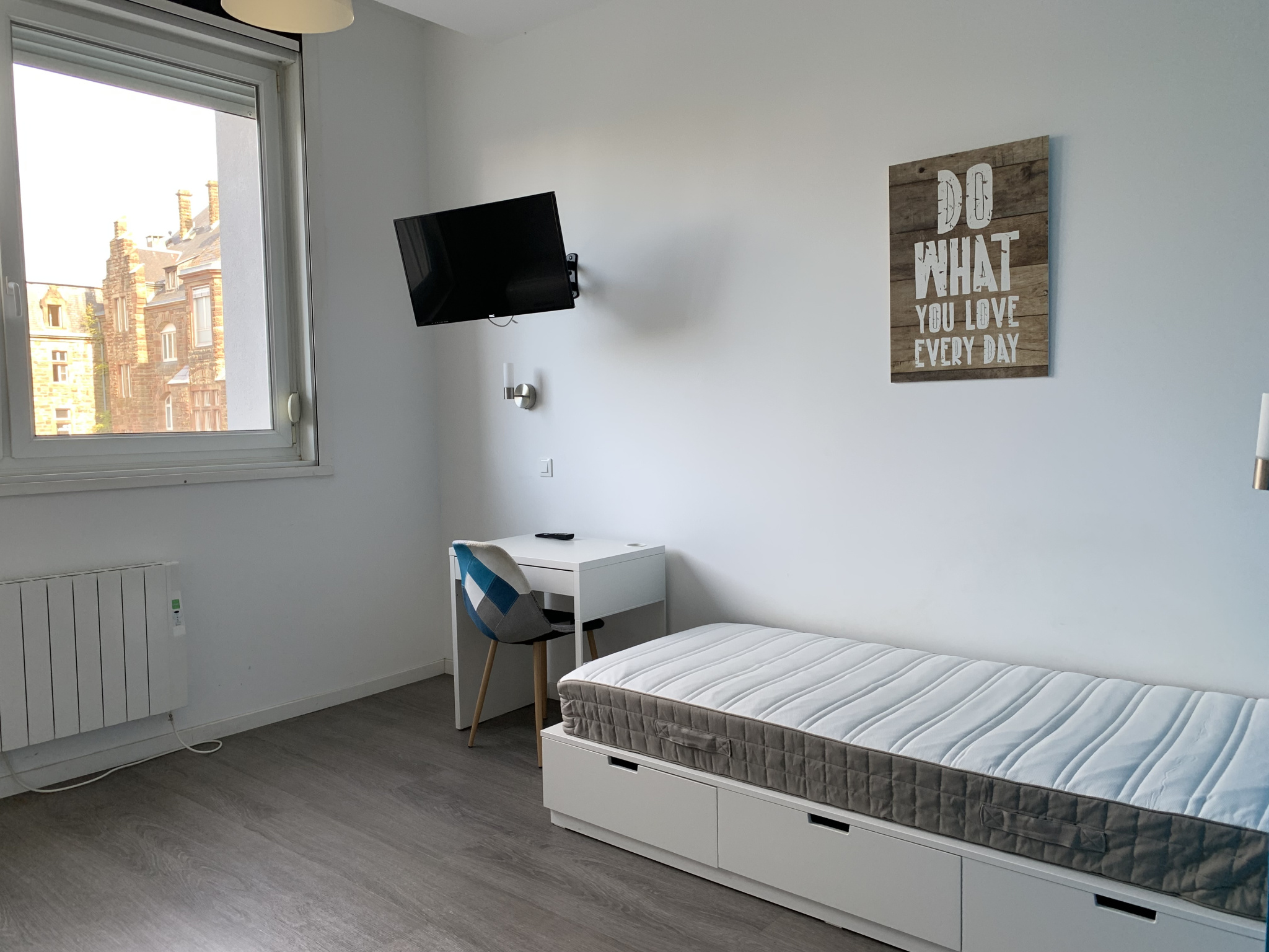 4F RUE DE L'ANCIEN HOPITAL : AU 3ème ETAGE + ASCENSEUR, CHAMBRE MEUBLEE No7 RECEMMENT RENOVEE, AVEC SALLE D'EAU + WC. CUISINE COMMUNE. LAVERIE COMMUNE.