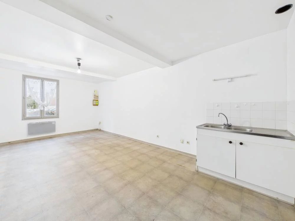 Entrée sur séjour avec coin cuisine, deux chambres dont une avec porte fenêtre donnant sur un jardinet, salle d'eau et WC.