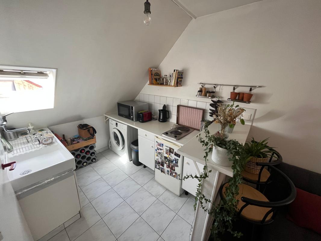 Très beau studio mansardé avec poutres apparentes de 24.92m² au deuxième et dernier étage comprenant un pallier desservant une pièce principale avec cuisi...