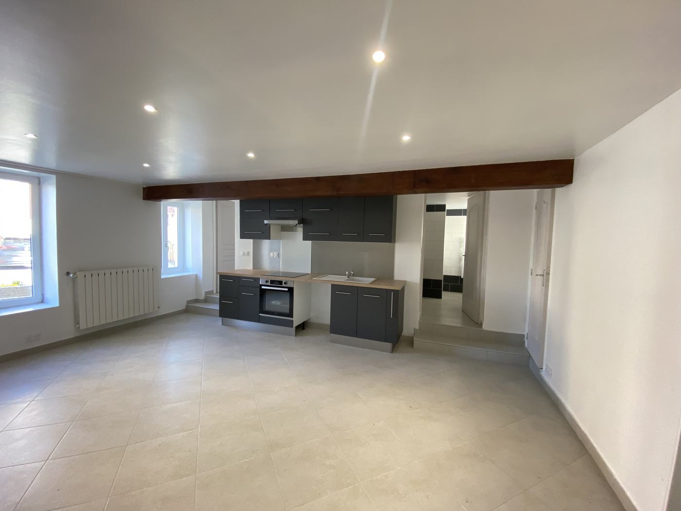 En centre ville de Mouroux , appartement F2 REFAIT A NEUF au RDC comprenant un séjour avec cuisine AMENAGEE et EQUIPEE (Plaque de cuisson, hotte et four), une chambre, une salle d'eau avec wc - Une place de parking - Chauffage par chaudière individuelle a...