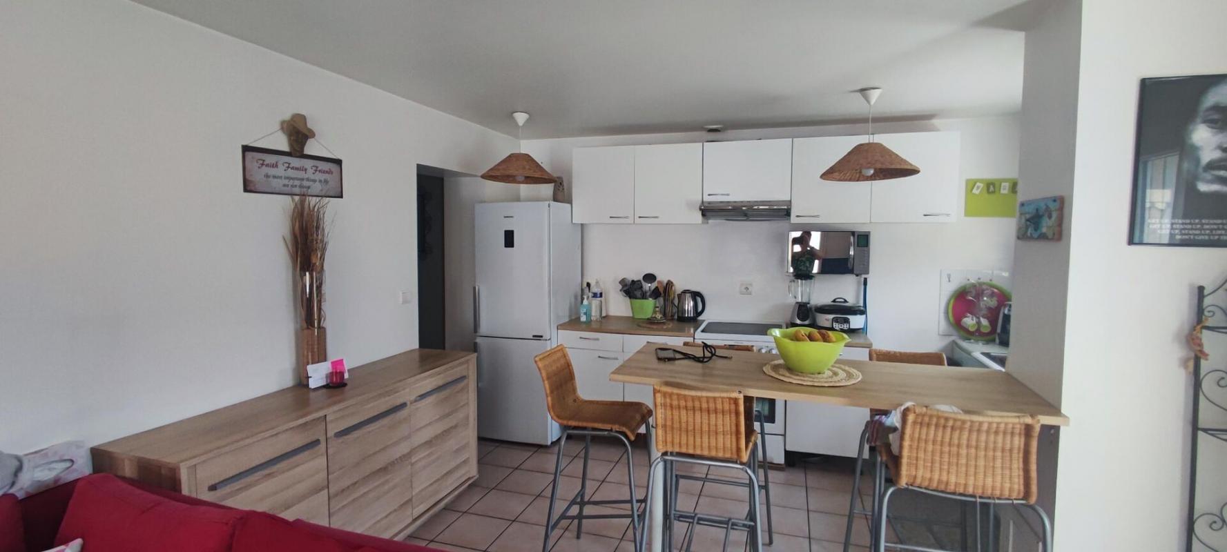 Il est composé d'un séjour, une cuisine équipée d'une plaque de cuisson, une hotte, un four, un réfrigérateur...