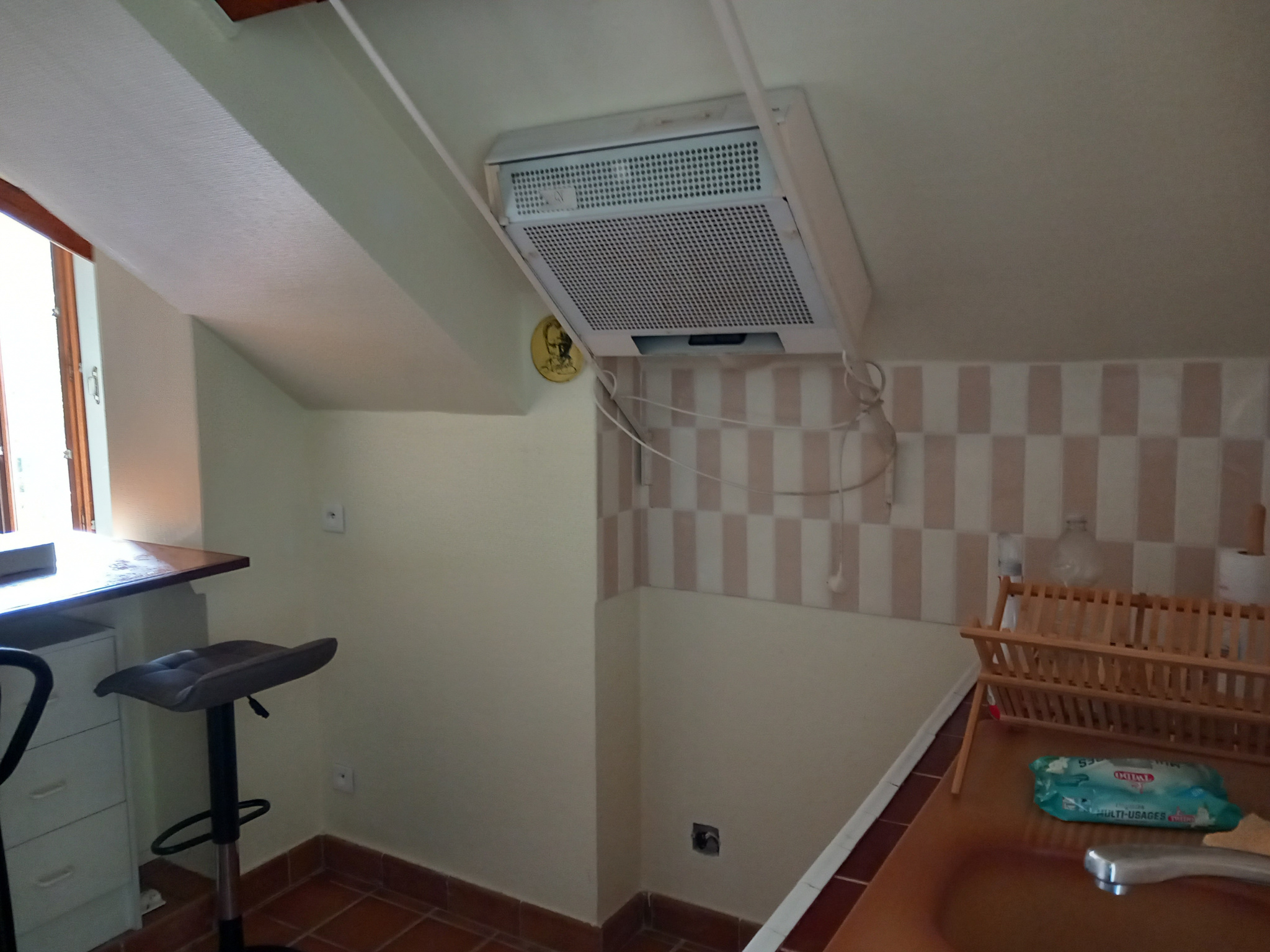 Une entrée, une grande cuisine aménagée (ou vous pouvez aménager un séjour), une salle de bain...