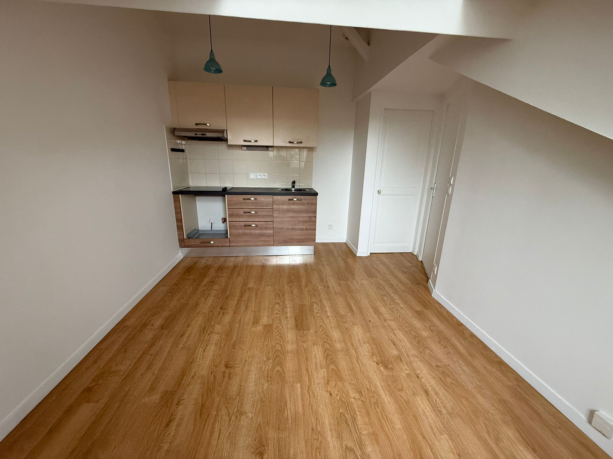 Il comporte un séjour, une chambre, une cuisine américaine et une salle d'eau.