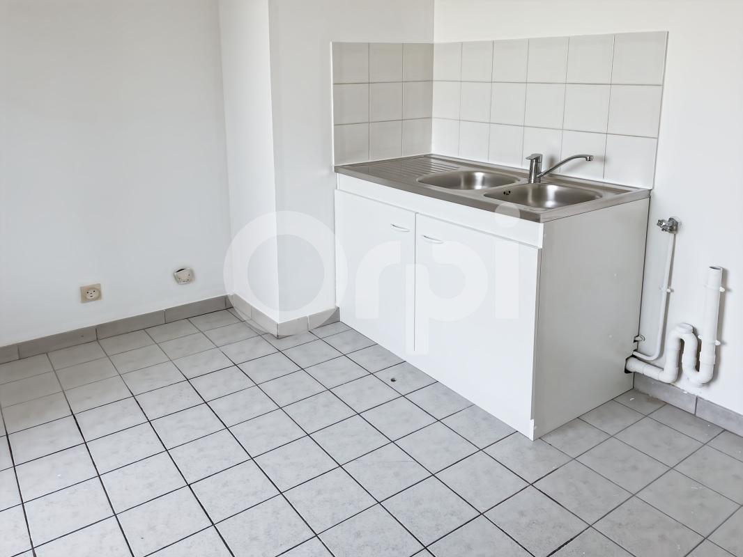 Résidence "Les Arènes", en centre-ville, au 4ème étage sans ascenseur, appartement F2 lumineux : entrée avec placard, séjour, cuisine indépendante semi-équipée, une chambre et salle de bains. Une cave. Eau froide comprise. Libre au 25 avril 2026.