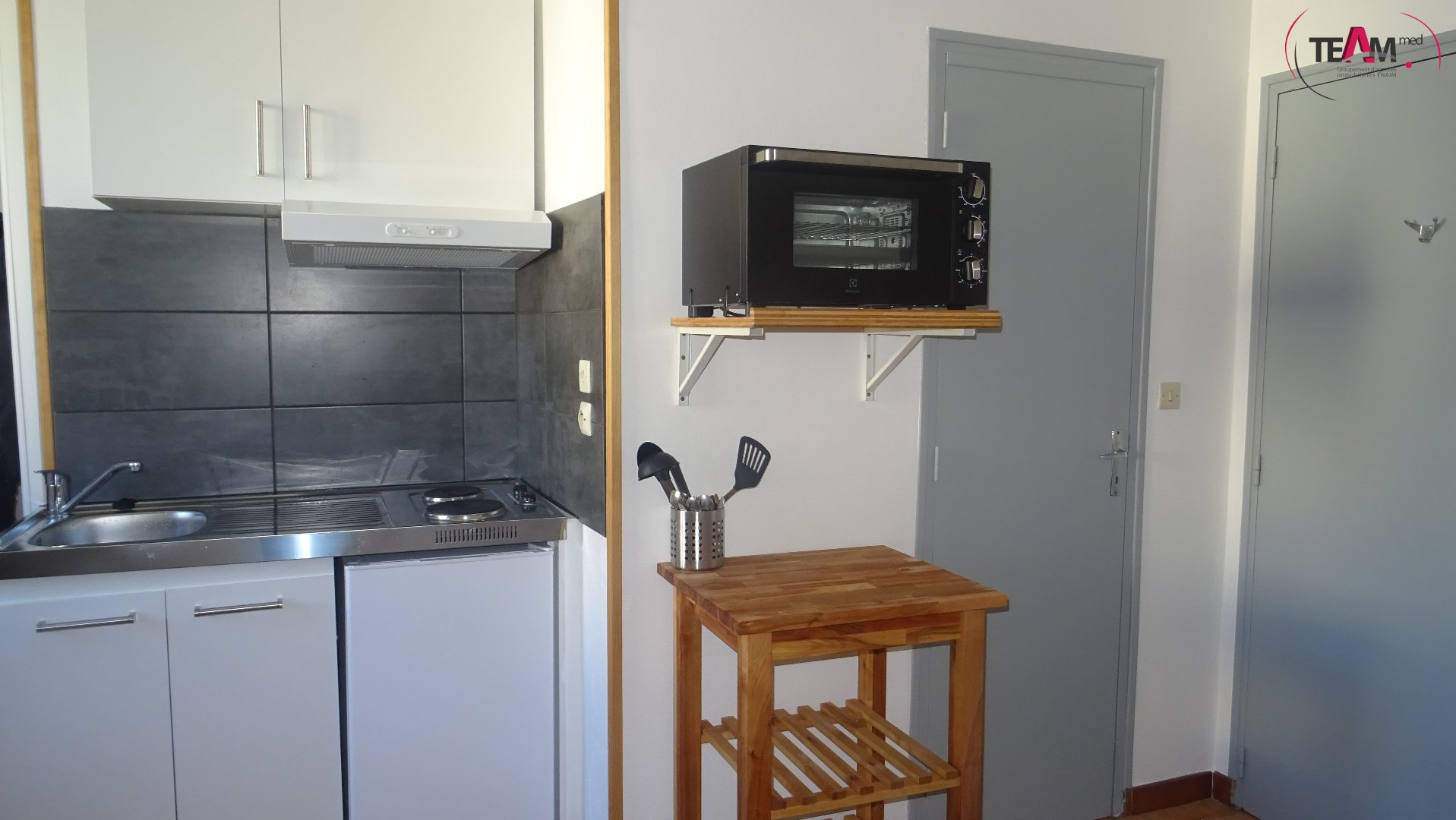 Il se compose d'un espace salon-séjour de 10 m2 avec sa cuisine équipée et aménagée.