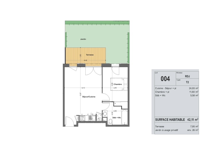 Un cadre privilégié avec jardin privatif ! Dans une résidence neuve, découvrez ce superbe T2 situé en rez-de-jardin, idéal pour conjuguer confort et extérieur. Il se compose d'un séjour lumineux avec cuisine équipée, d'une chambre avec placard intégr...