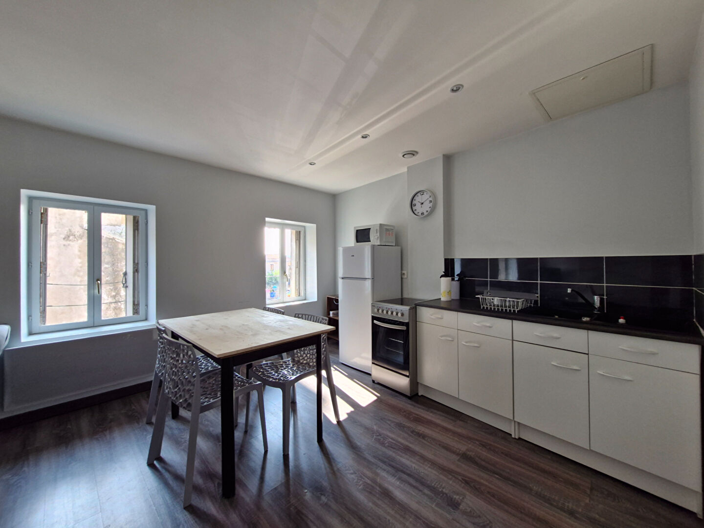 A louer au coeur du village de Sigean, appartement T2 rénové avec goût de type 2 au 3éme et dernier étage. Il se compose: d'une entrée, une chambre, un séjour/cuisine, une salle d'eau et un WC séparé.