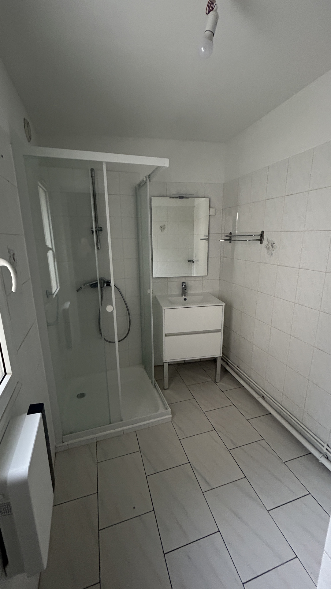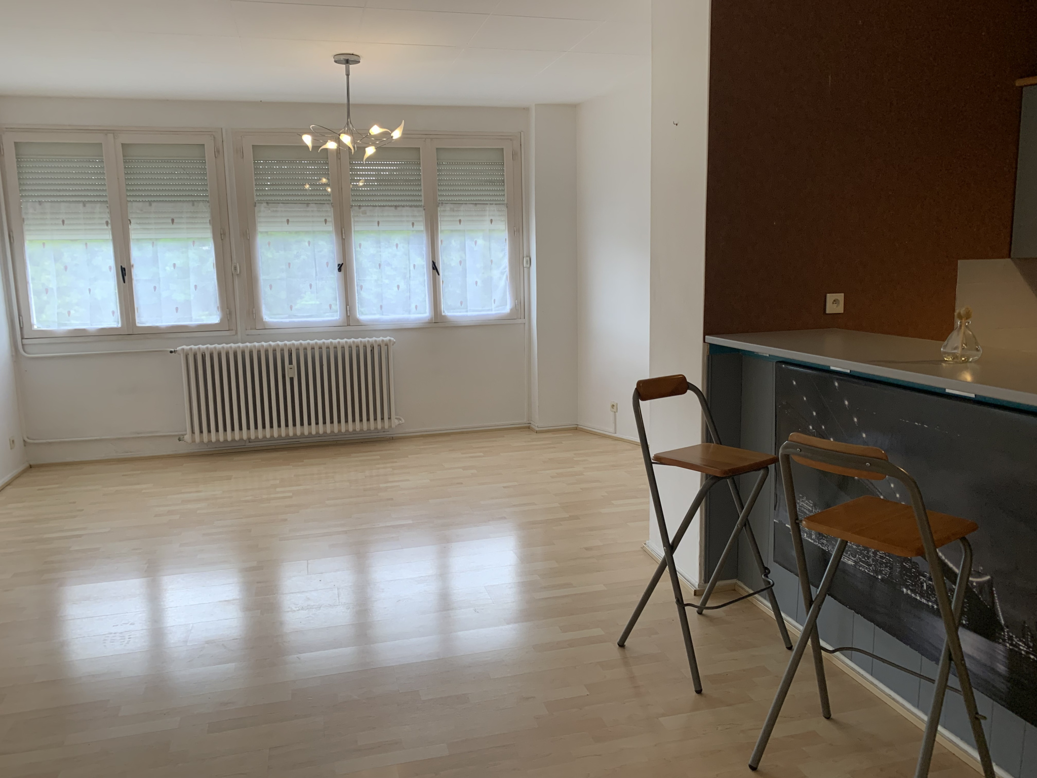 A LOUER PLACE DE L'HOTEL DE VILLE Type 2 comprenant entrée, séjour, cuisine aménagée et équipée, une chambre, bureau ou petite chambre ou dressing avec grand placard, salle de bains avec douche, wc.