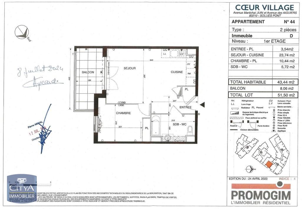 Solliès-Pont, libre début avril Résidence Les Allées du Château. Au 4ème et dernier étage avec ascenseur, appartement type 2 entièrement neuf.
