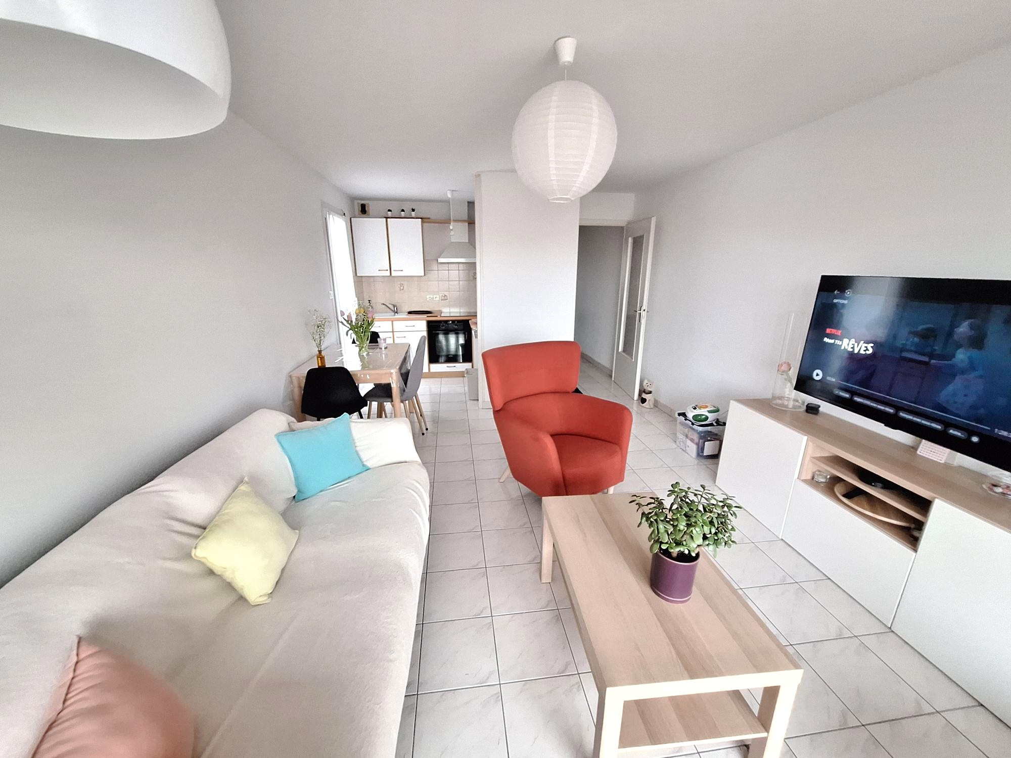 s?jour ouvert sur cuisine am?nag?e et ?quip?e ( plaque, hott...