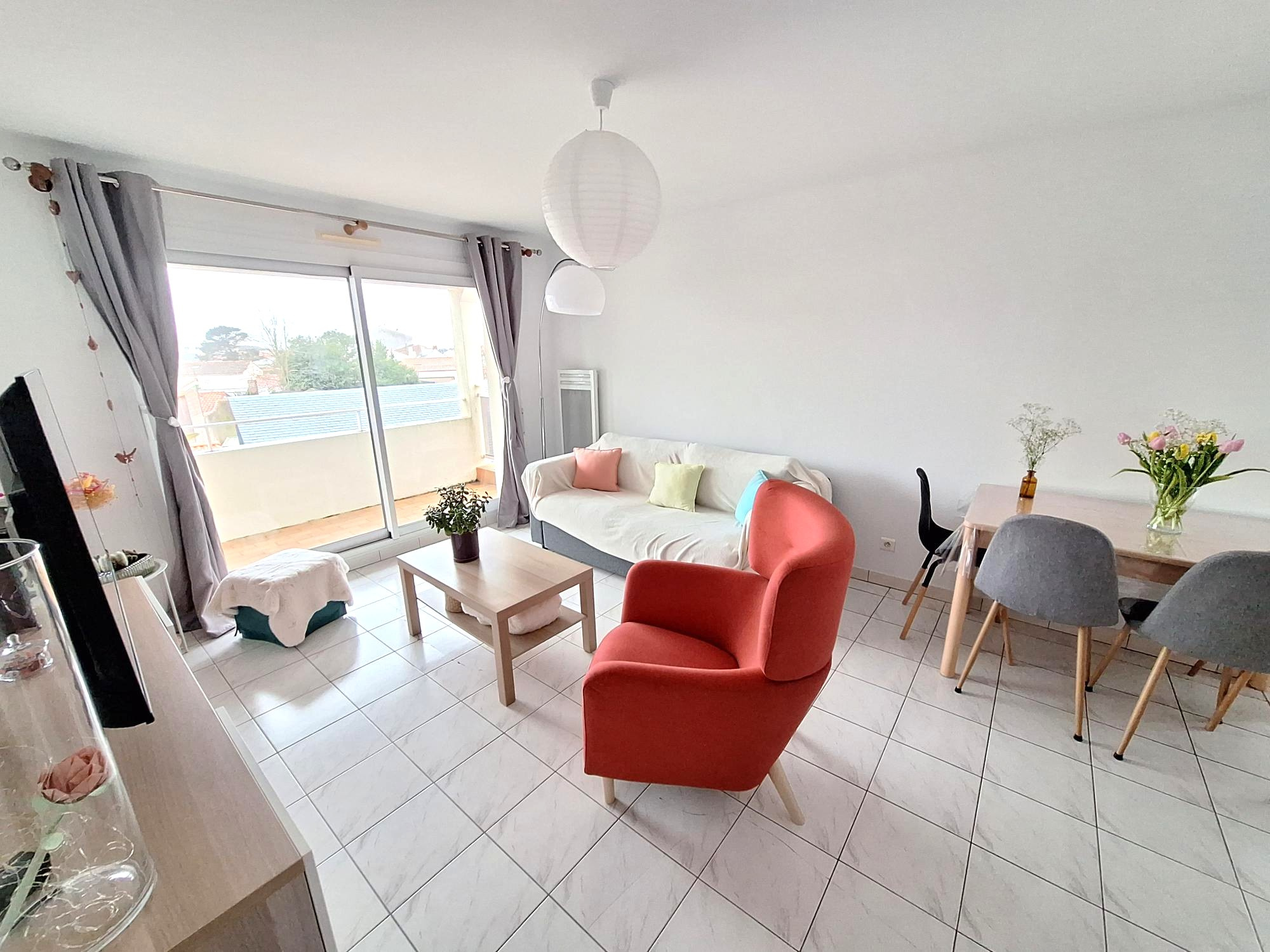 APPARTEMENT T2 MEUBLÉ situé QUARTIER SAINT PIERRE, comprenant cuisine ouverte sur grand séjour, chambre et salle d'eau avec wc séparés.