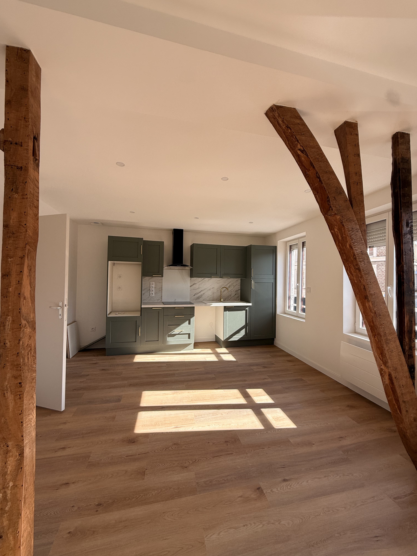 - Pièce de vie lumineuse de 25 m2, cuisine aménagée et équipée.