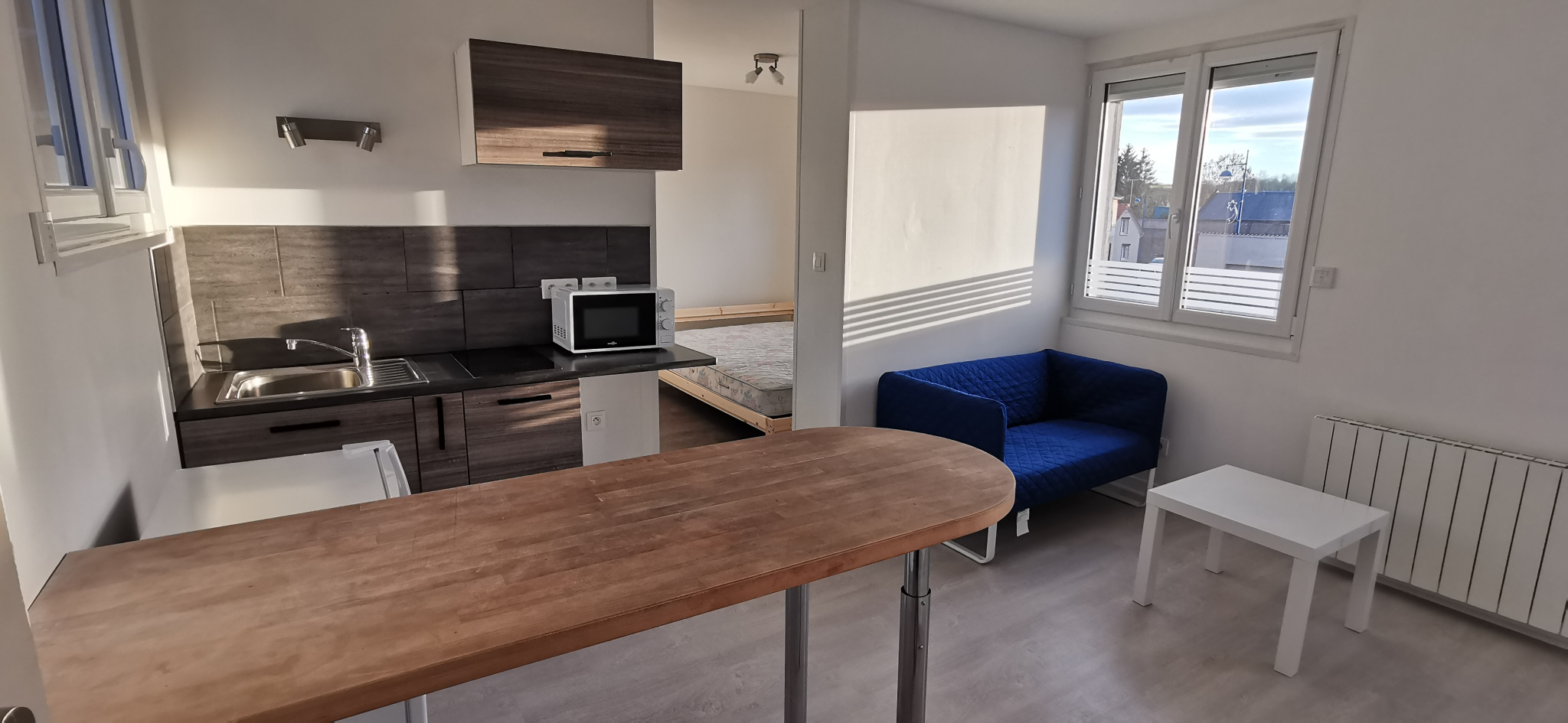 Appartement F1 BIS MEUBLÉ situé à SALEUX, offrant séjour avec cuisine, un coin nuit, une salle d'eau avec WC.