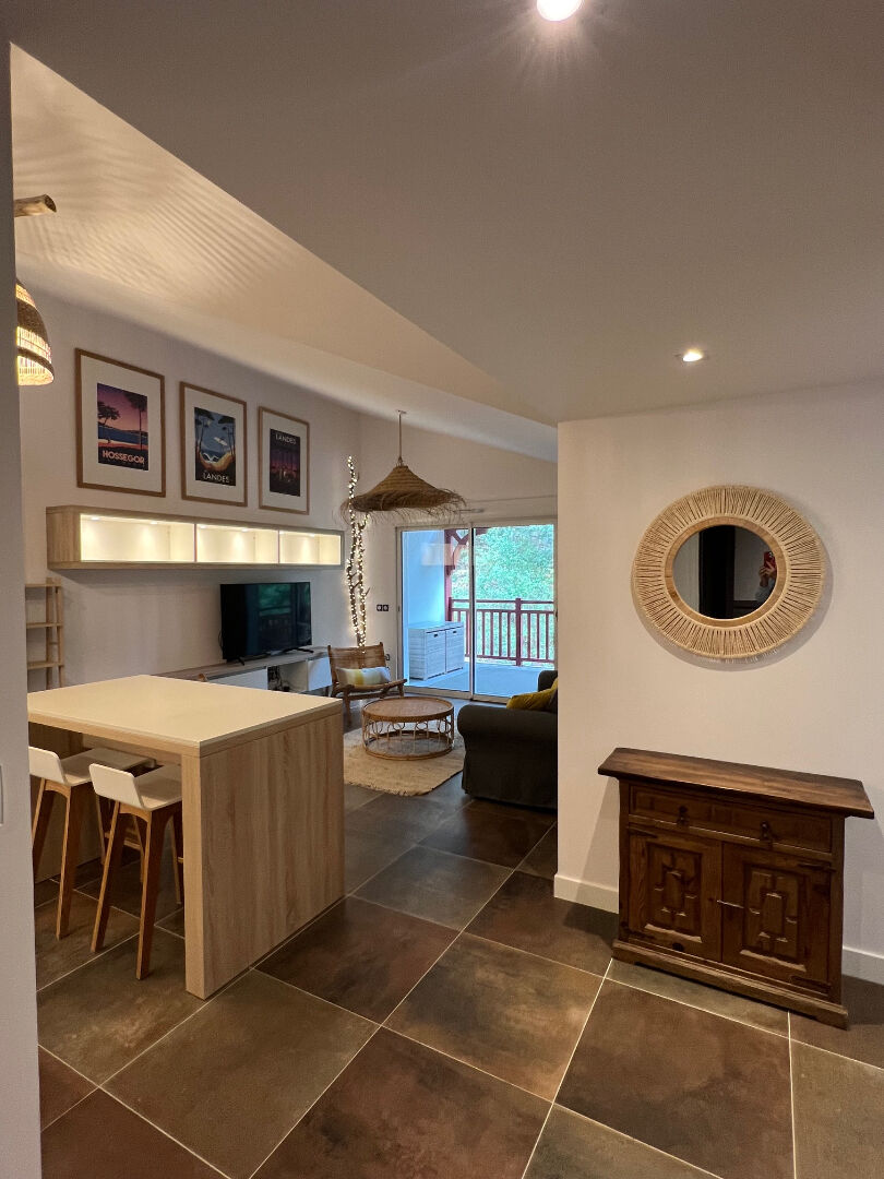 A louer, appartement T3 meublé secteur Lac d'Hossegor. Il est composé d'une entrée avec placard, d'une cuisine aménagée et équipée, d'un séjour donnant sur balcon, de deux chambres dont une avec placard, d'une salle d'eau, d'...