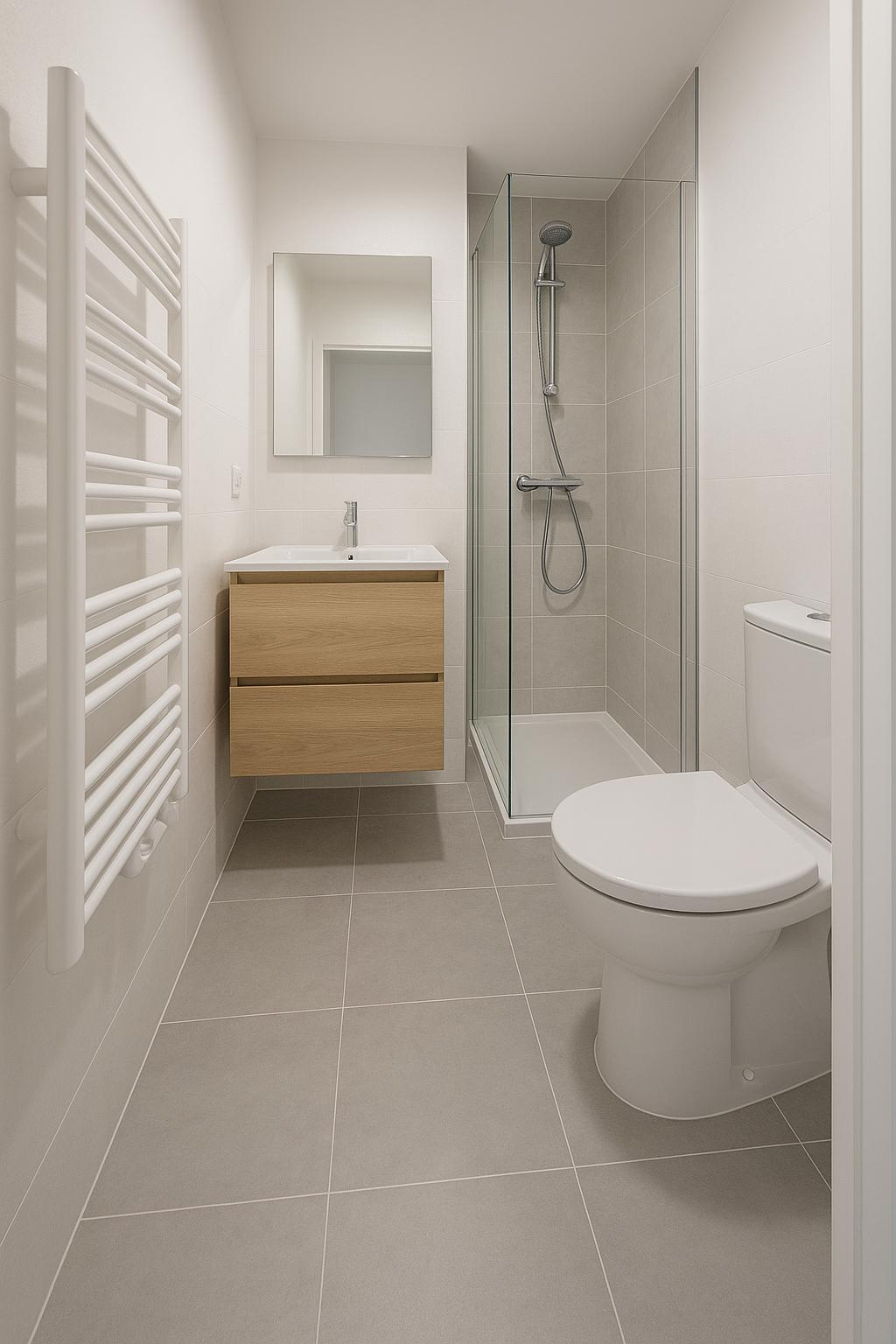 L'appartement est constitué d'un espace cuisine, un coin salon de 20.5m2, une salle d'eau et un espace nuit compre...