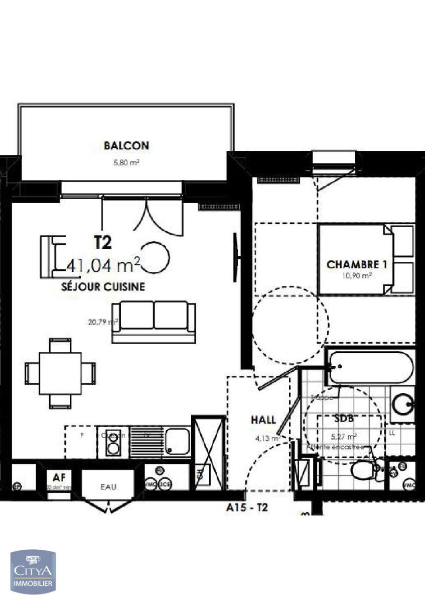 L'appartement de 41,06 m² se compose de deux pièces, dont un séjour lumineux, une cuisine équipée et aménagée, une chambre confortable, une salle de bain avec WC ...