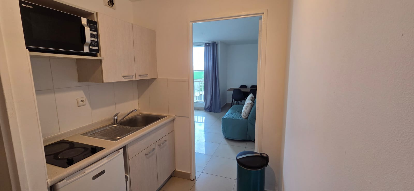 Situé au 5e étage d'une résidence sécurisée, ce T1 meublé bénéficie d'un emplacement idéal à proximité de la faculté de Saint-Denis.