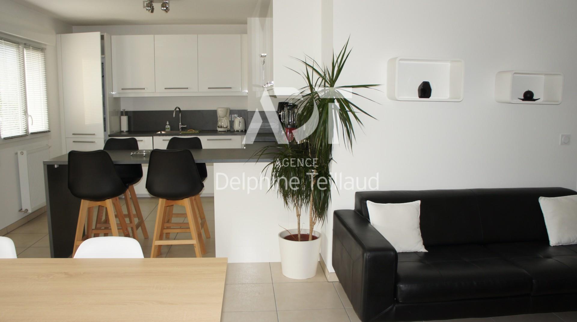 Appartement T4 meublé haut de gamme au premier étage d'une petite résidence récente, avec une place de stationnement couverte au niveau des garages. Cuisine équipée (p...