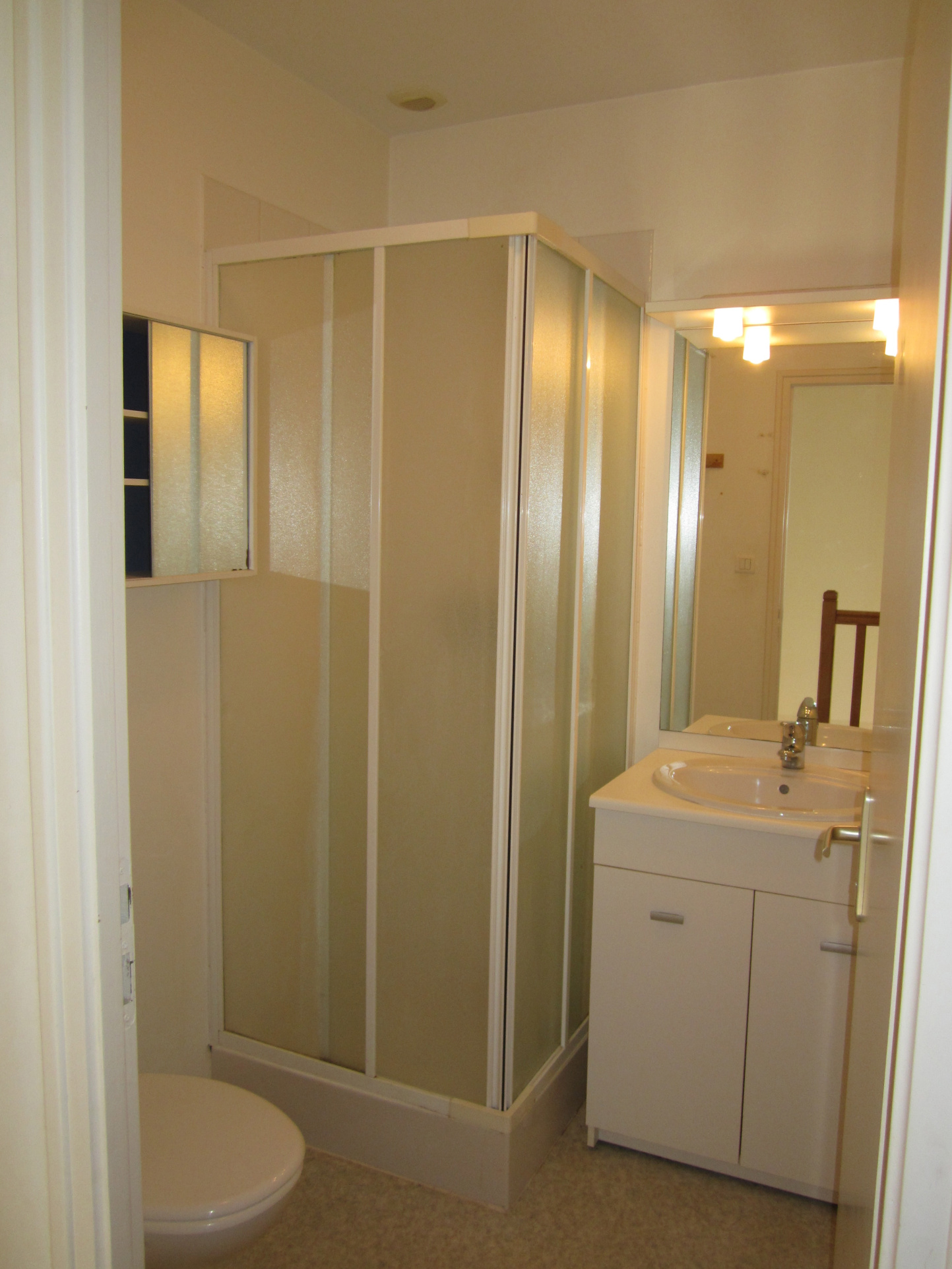 Appartement T3 en duplex comprenant, au rez-de-chaussée : un séjour avec coin cuisine. À l'étage : un palier desservant deux chambres avec placards et une salle d'eau avec WC. Chauffage électrique, volets roulants électriques.