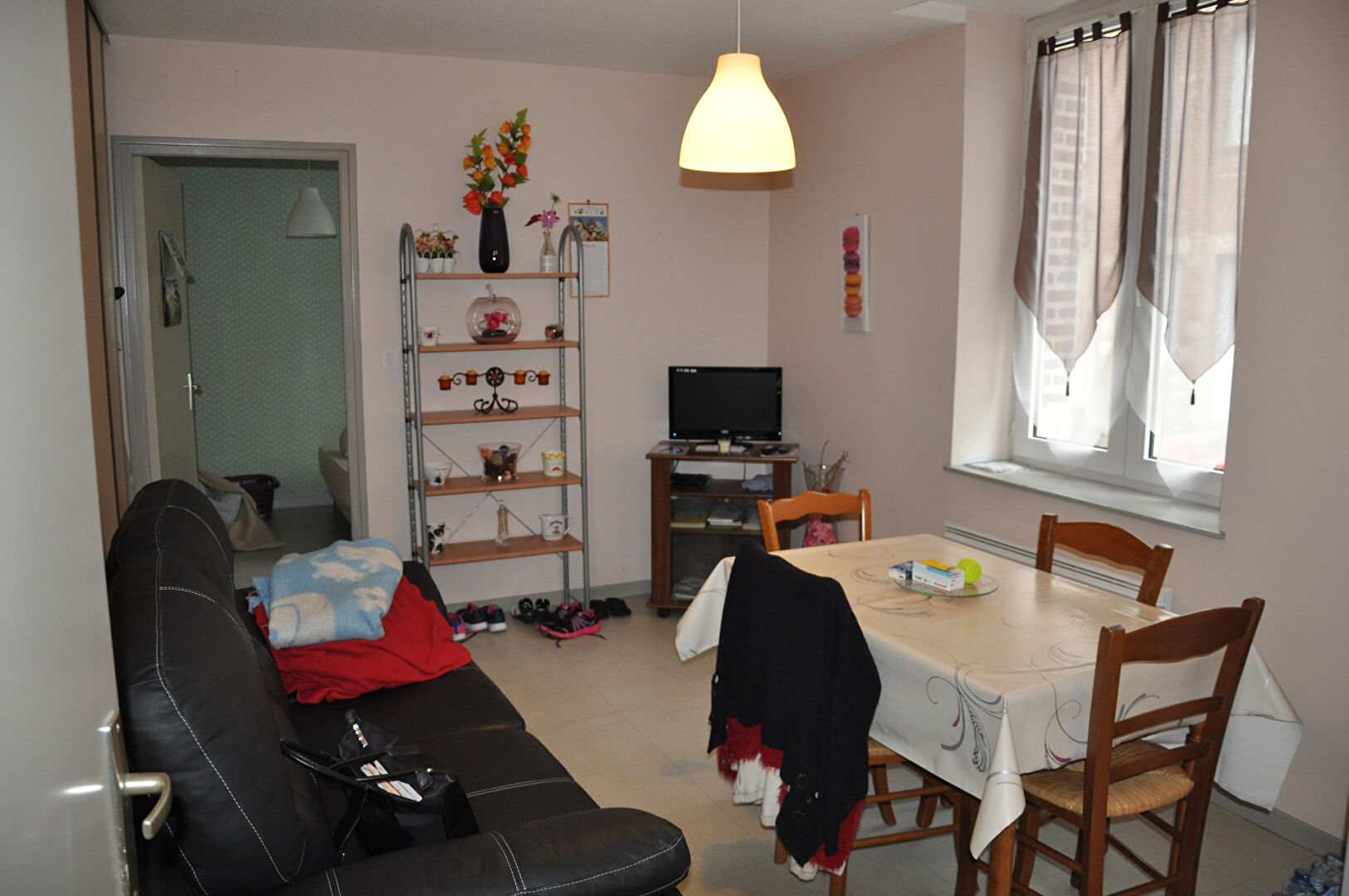 Centre bourg -Dans petite résidence calme avec jardin commun, appartement au rez-de-chaussée comprenant entrée avec placards, pièce de vie avec coin cuisine ouvert sur séjour, une chambre avec placard, salle d'eau avec wc. Chauffage électrique. Menuiserie...