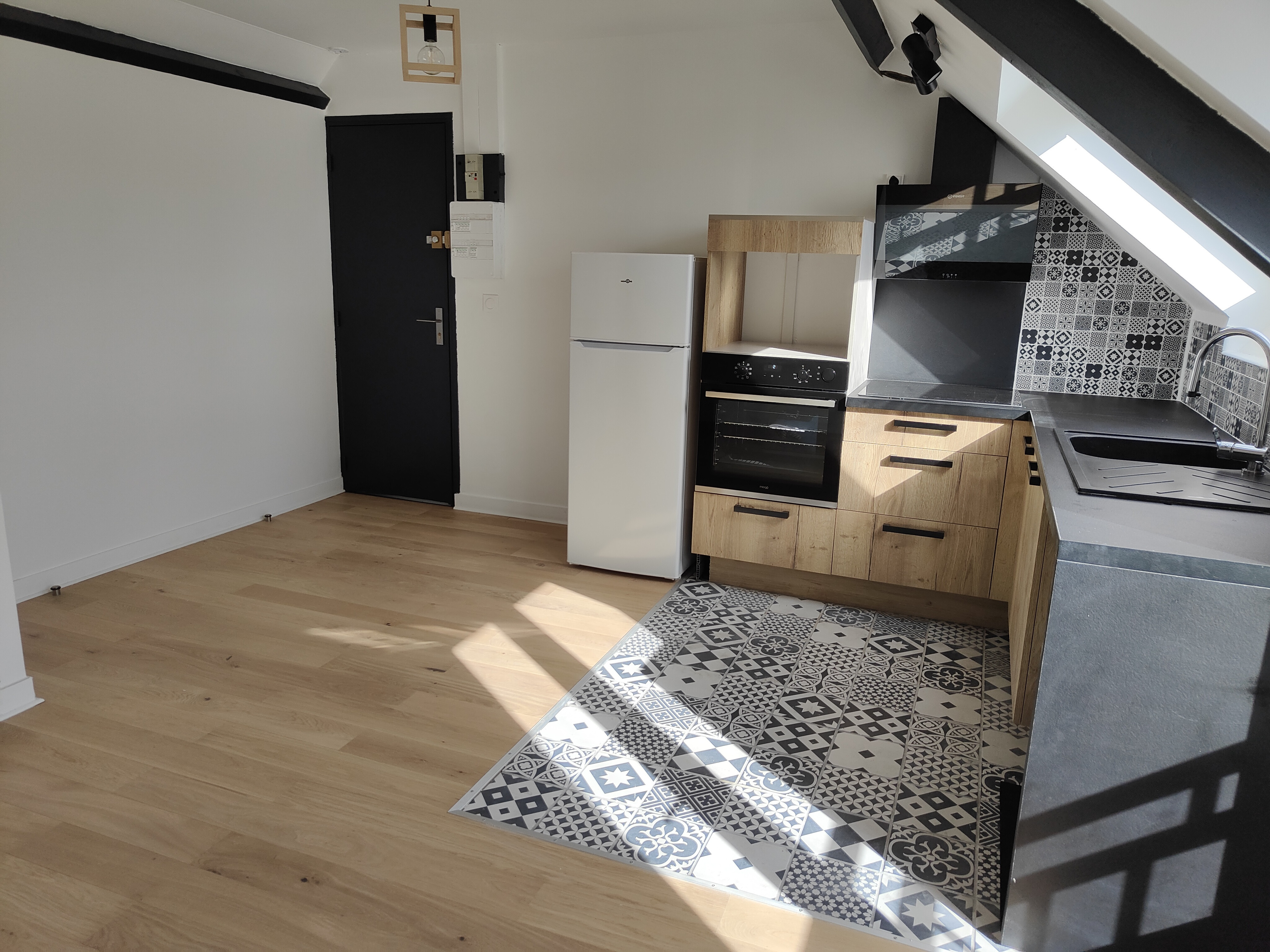 SAINT-GRATIEN Centre Ville En étage, STUDIO de 18,32 m² loi carrez et 23,42 m² surface habitable entièrement refait à neuf, pièce principale avec coin cuisine aménagée, placard, salle d'eau avec wc, chauffage ind. électrique cave et parking extérieu...