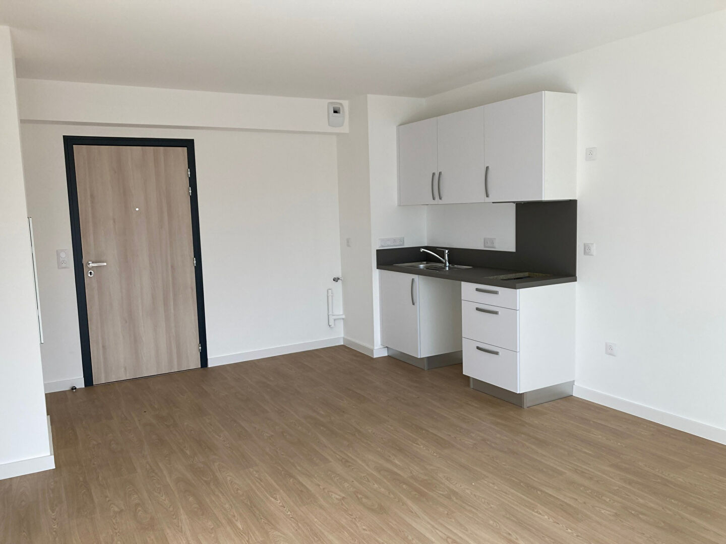 Dans une résidence securisée, cet appartement au 1er étage comprend une entrée, un séjour avec un espace cuisine (meubles, plaque de cuisson et hotte), un dégagement avec un placard, une chambre avec placard, une salle d'eau avec meuble vasque, sèche se...