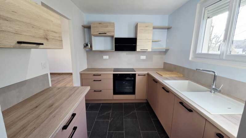 Bords de Loire, et proche du bourg, appartement F4 composé d'une séjour, une cuisine aménagée et équipée (hotte+plaques), un cellier, une couloir desservant 3 chambres, dont 1 avec placard, salle de bains, wc. Une cave et une place de parking extérieure.