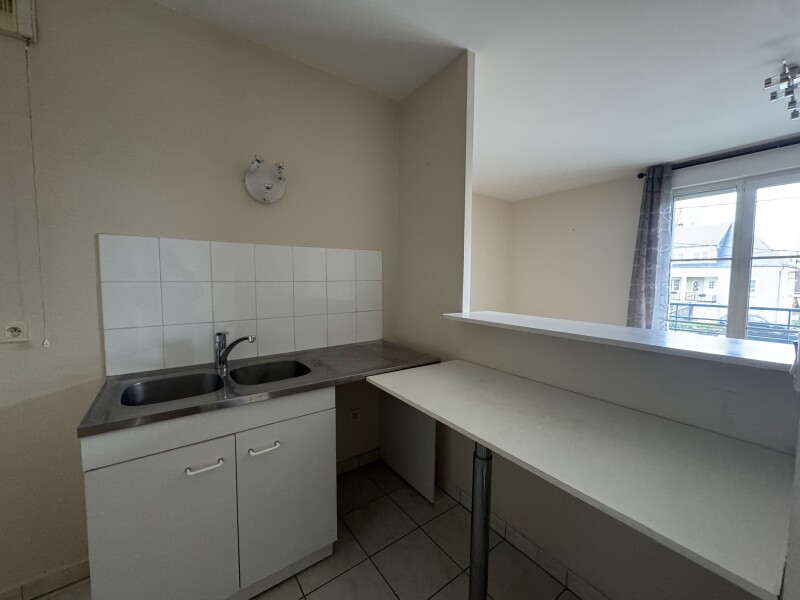 Saint Jean de Braye, rue de la Glacière, appartement F2 comprenant une entrée avec placard aménagé, une cuisine ouverte aménagée et équipée (plaque de cuisson, hotte, meubles hauts et bas), une chambre avec placard aménagé, une salle d'eau et des WC. Une ...