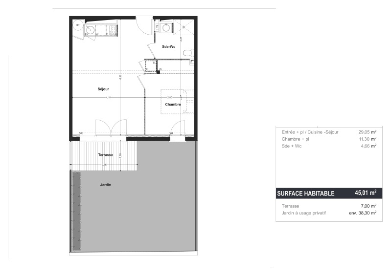 Cette résidence neuve se situe dans un quartier résidentiel calme à seulement 7 min de la gare et moins 10 min des écoles et des commerces. Nous vous proposons d'être le premier locataire de ce T2 situé au rez-de-jardin. Il se compose d'une entr...