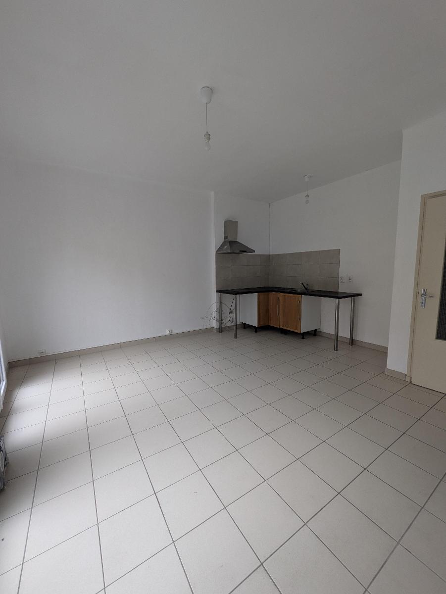Entrée, salle d'eau/WC, chambre, placard, séjour avec cuisine ouverte.